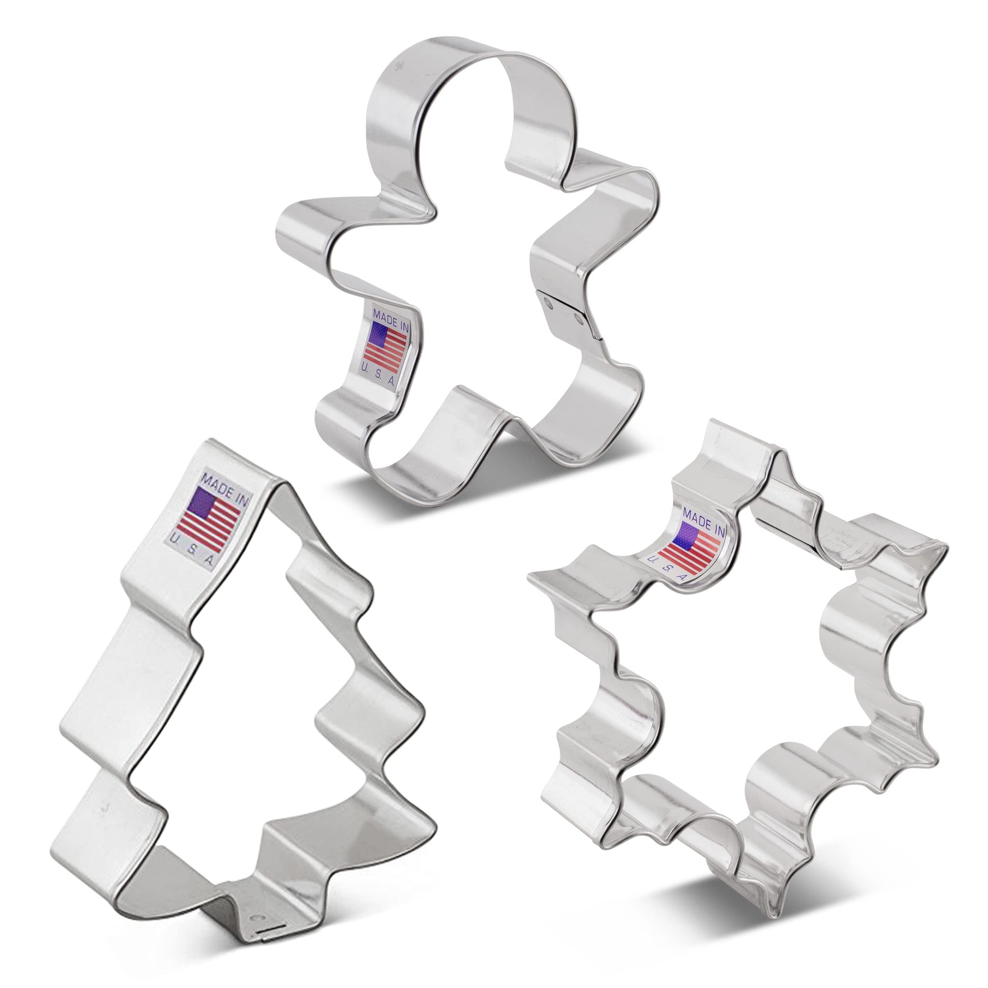 Ann Clark Cookie Cutters Christmas Cookie Cutters 3-Pc. Set Made in USA, Snowflake, Gingerbread Man, Christmas Tree