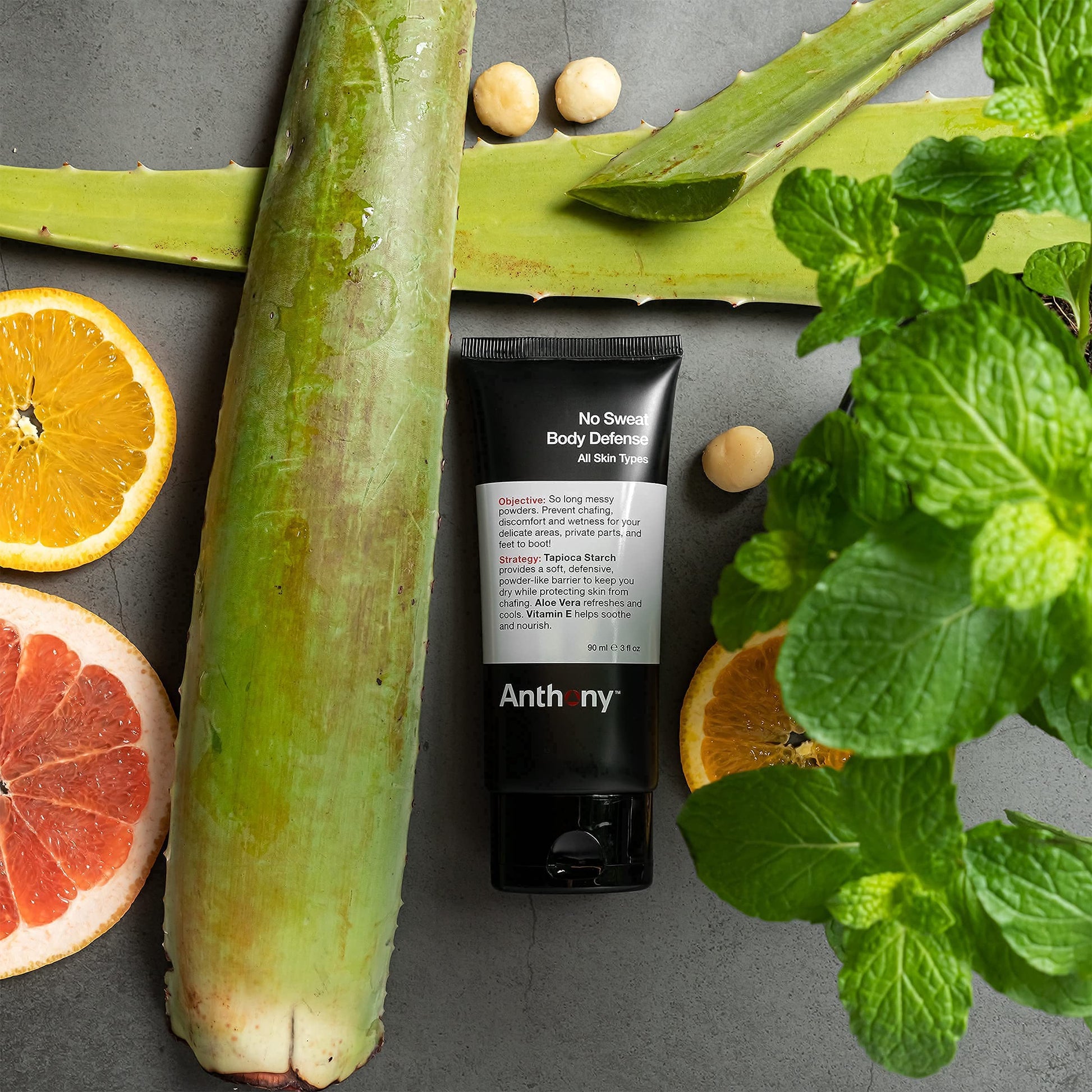 Anthony No Sweat Body Defense Deodorant for Men, Anti-Chafing & Anti-Itch Cream-to-Powder Lotion for Groin, Thighs & Underarms, Talc-Free, Absorbs Moisture, Sweat & Odor Control, 3 fl oz