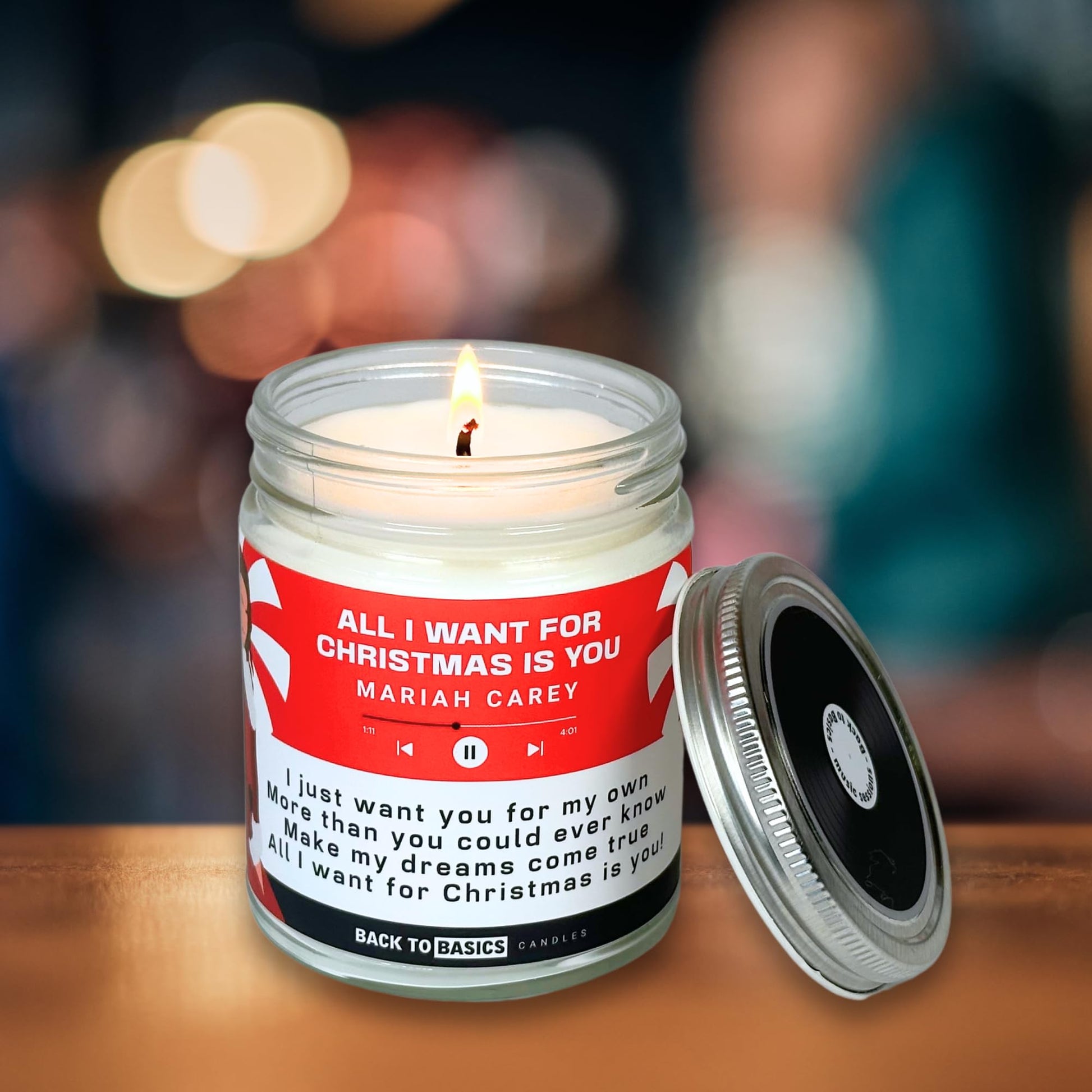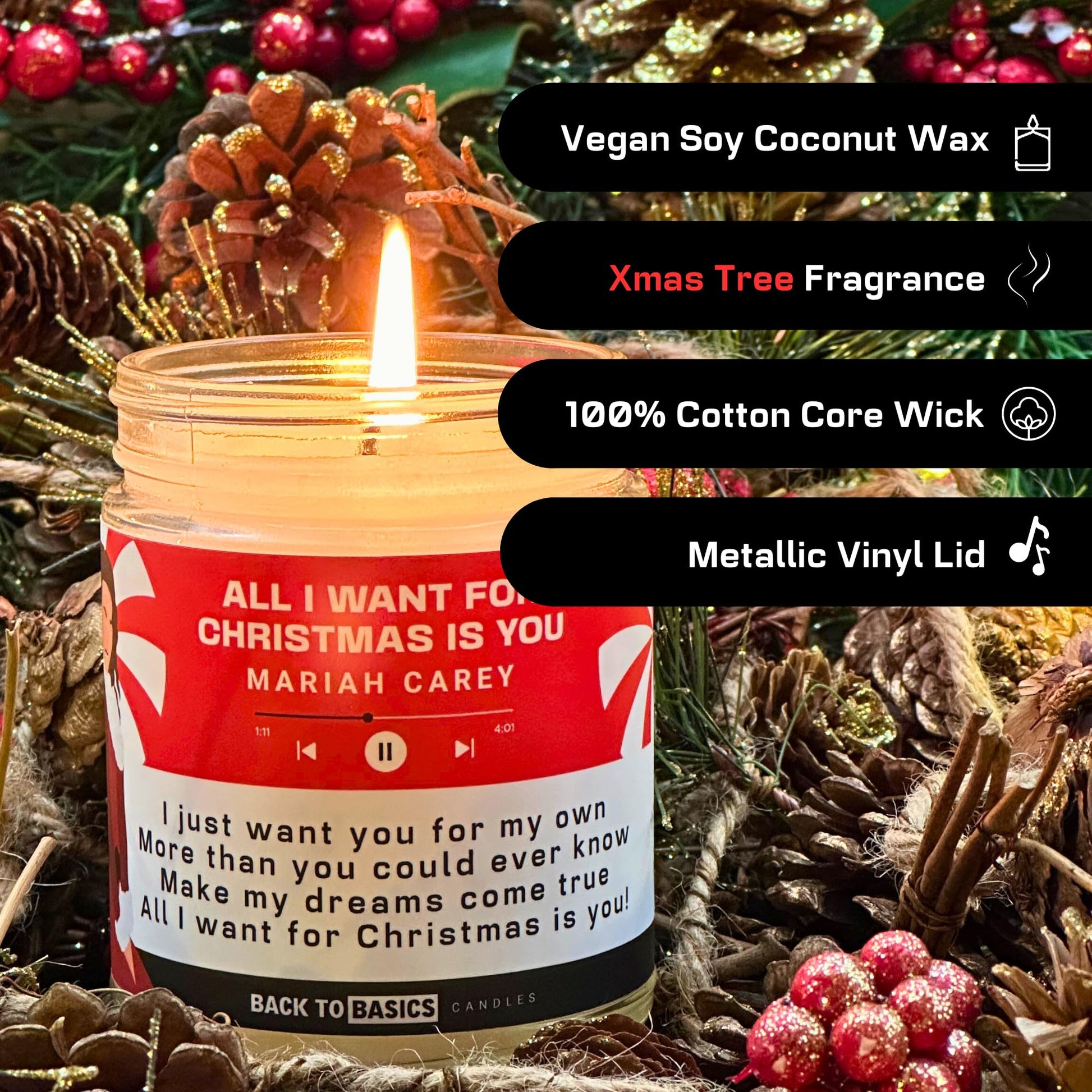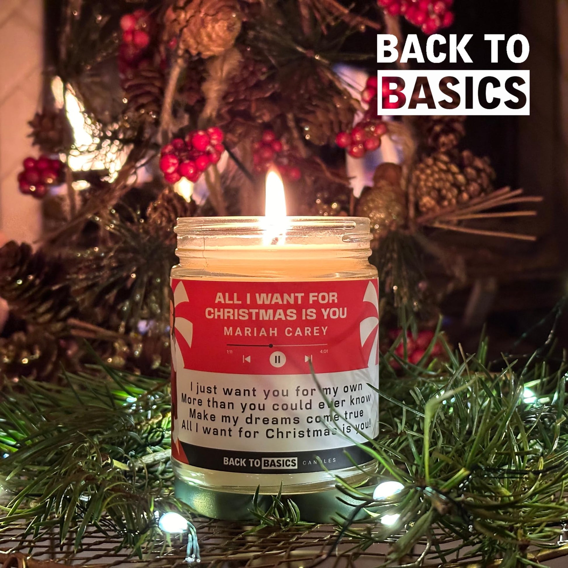Back to Basics Candles | All I Want for Christmas - 9oz Soy Wax Xmas Tree Scented Candle for Home Decor, Birthday Gifts for Women, Men, Best Friend | Relaxing Aromatherapy Made in USA