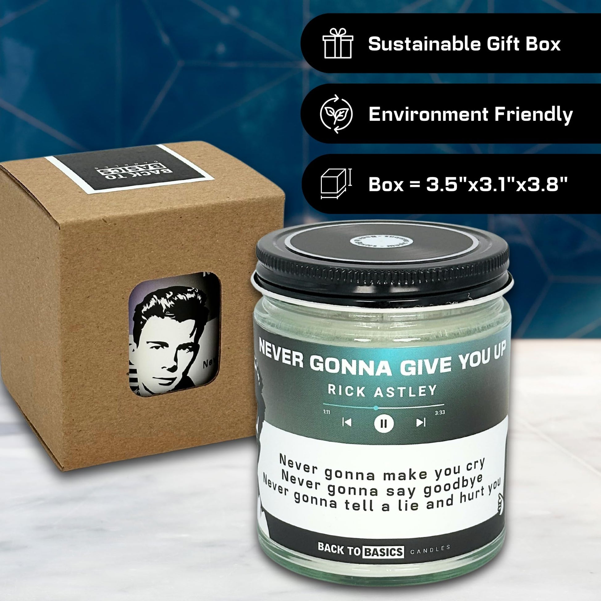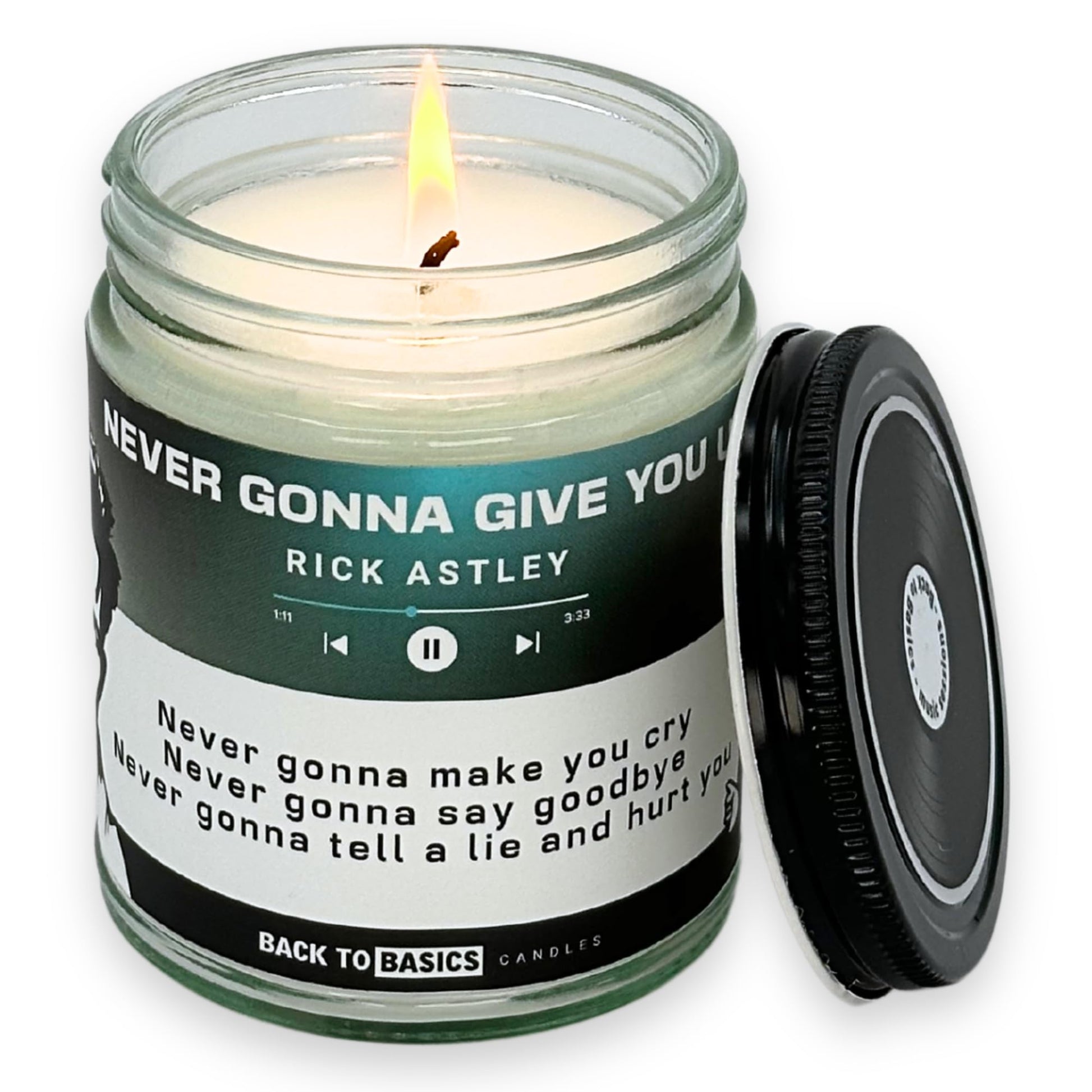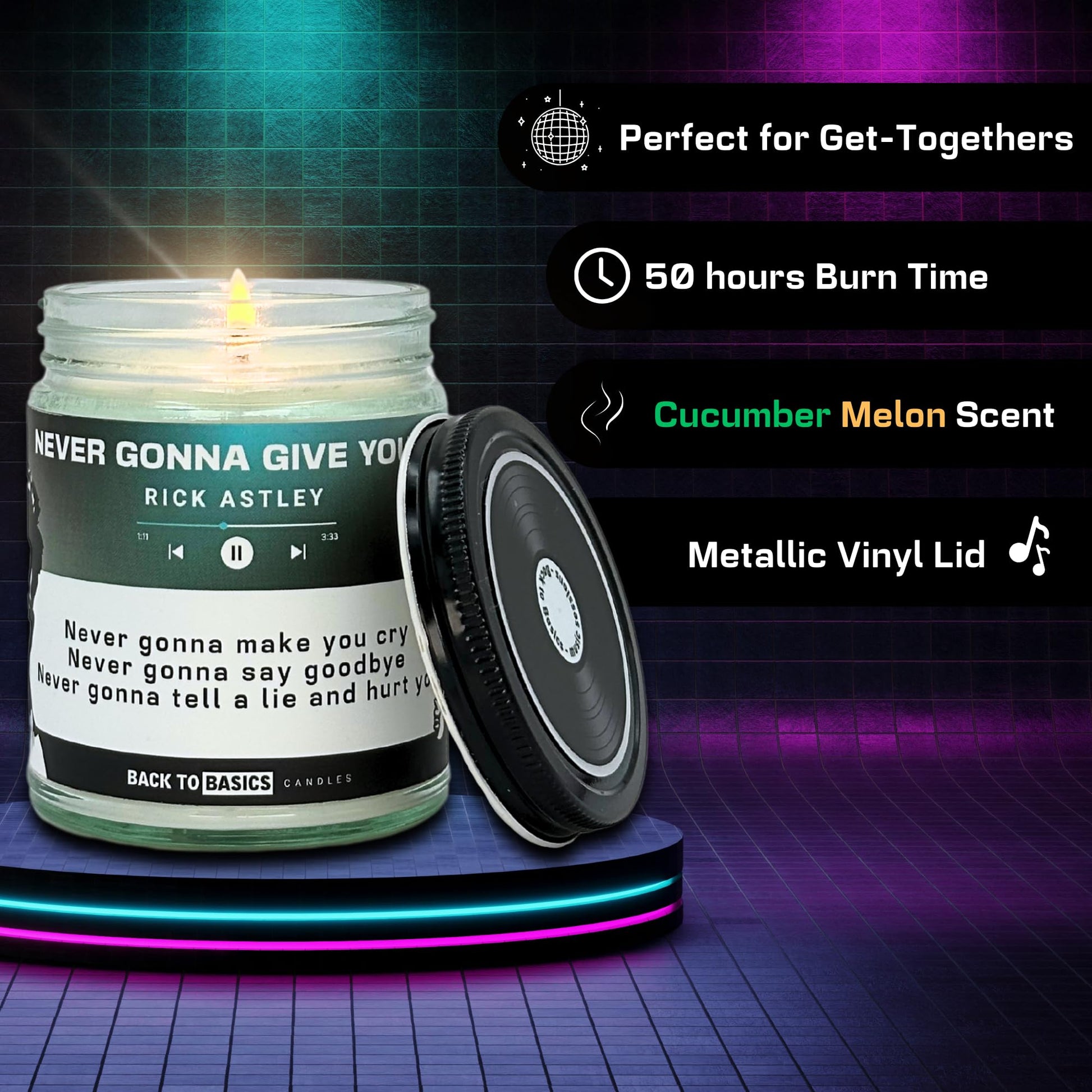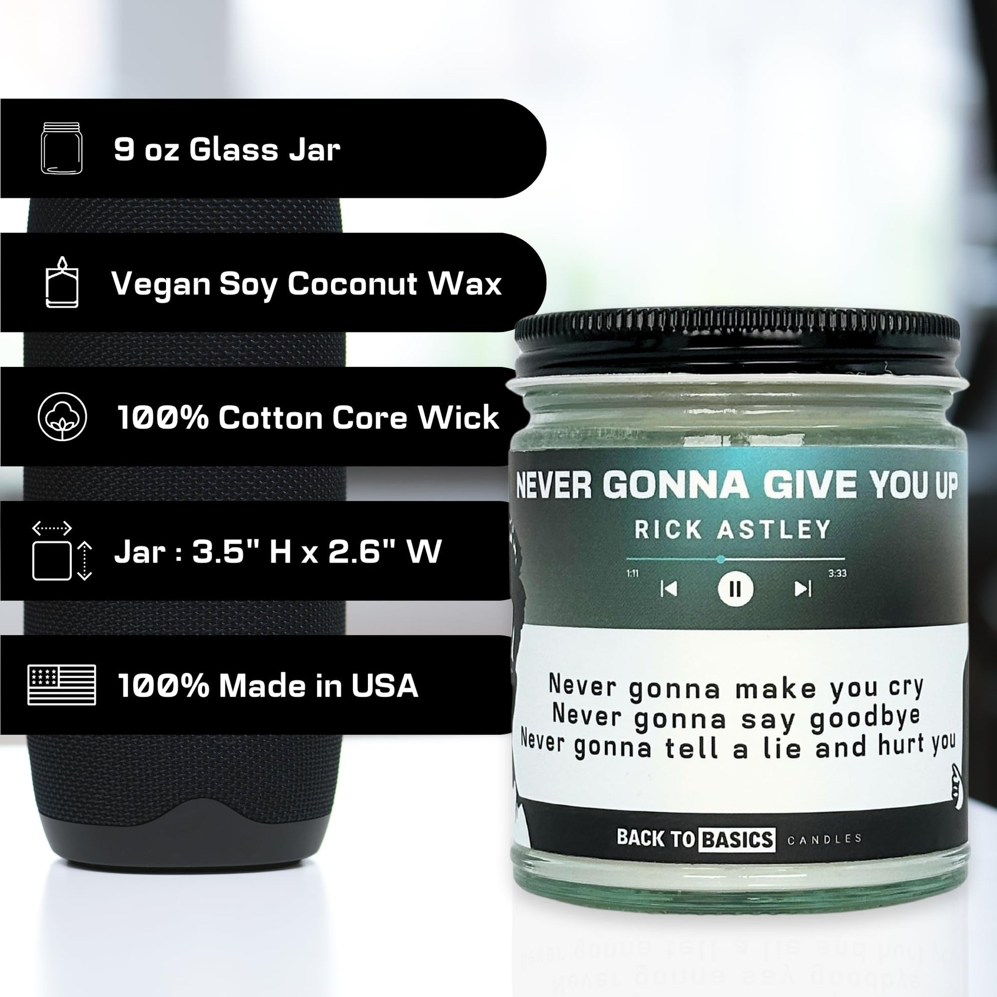 Back to Basics Candles | Never Gonna Give You Up - 9oz Soy Wax Cucumber Melon Scented Candle for Home Decor, Birthday Gifts for Women, Men, Best Friend | Relaxing Aromatherapy Made in USA