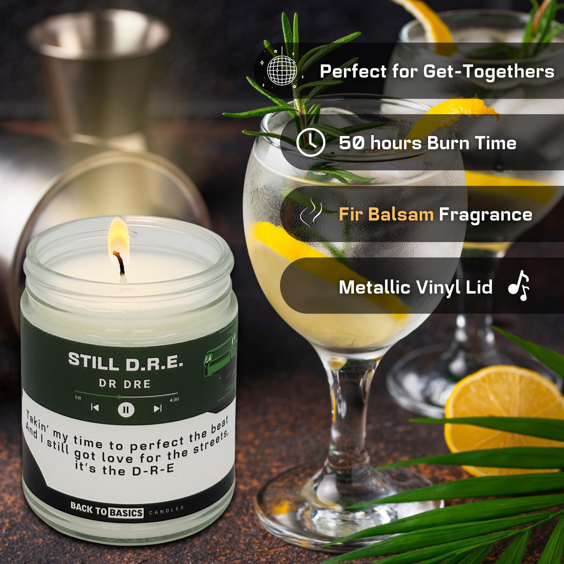 Back to Basics Candles | Still D.R.E. - 9oz Soy Wax Fir Balsam Scented Candle for Home Decor, Birthday Gifts for Women, Men, Best Friend | Relaxing Aromatherapy Made in USA