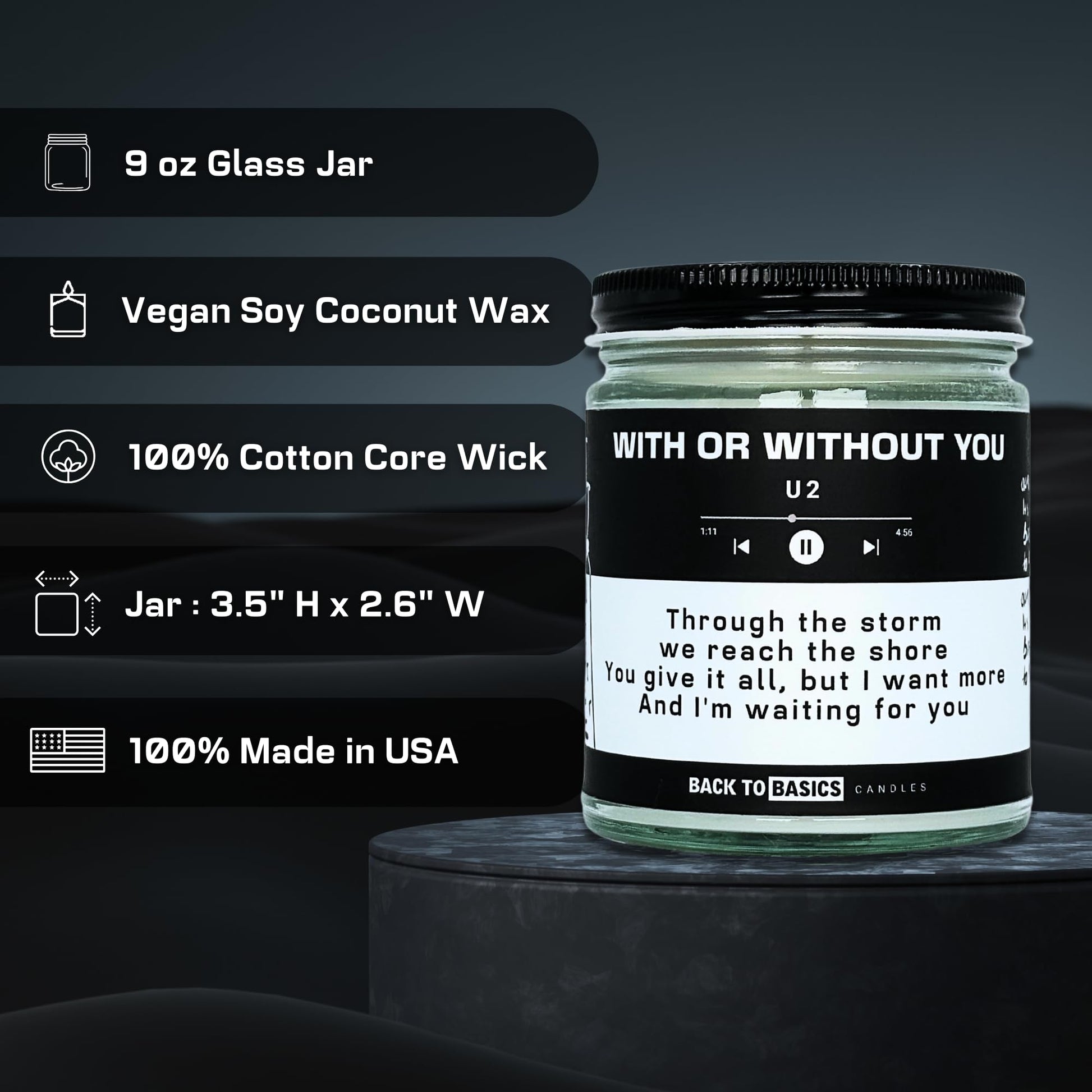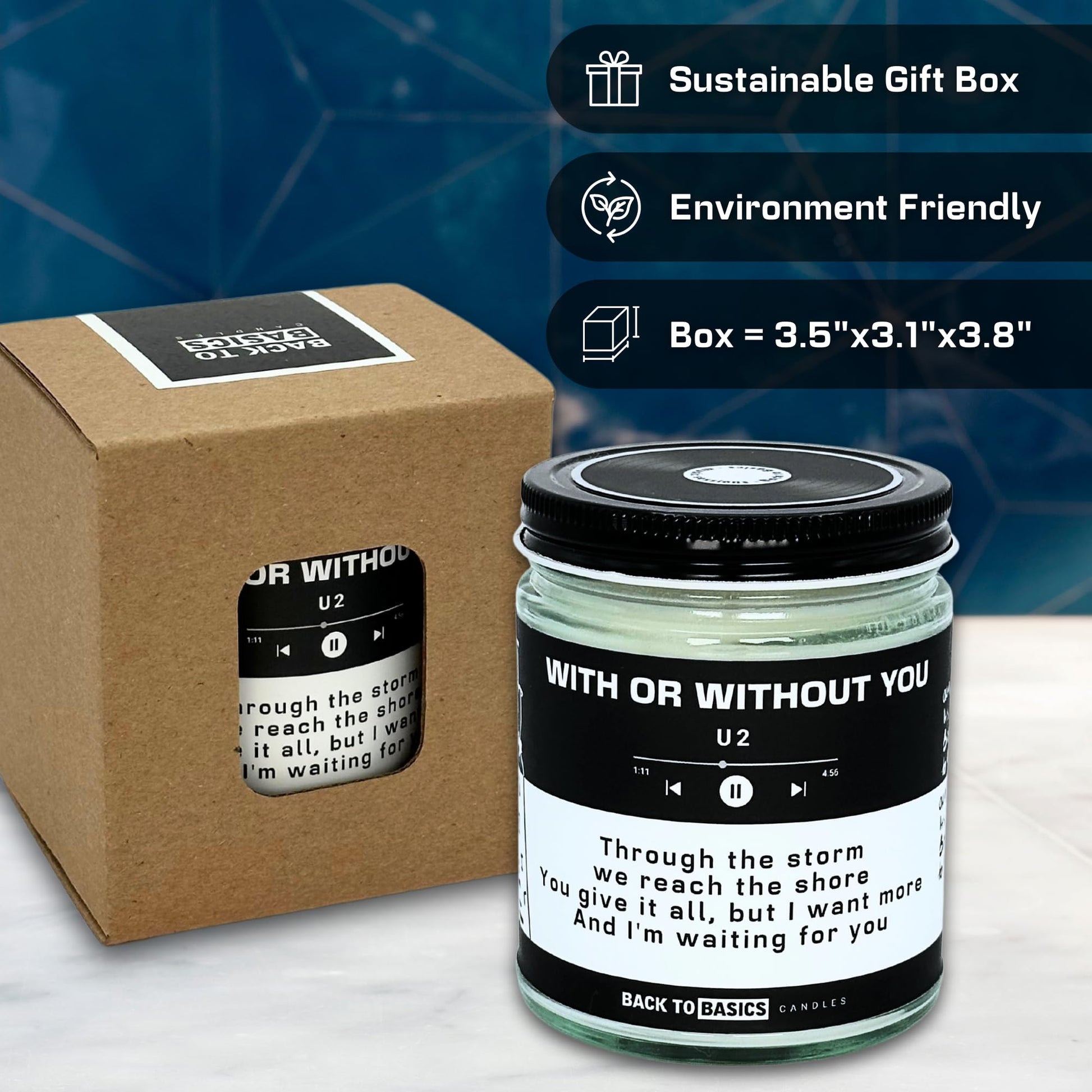 Back to Basics Candles | with or Without You - 9oz Soy Wax Fir Balsam Scented Candle for Home Decor, Birthday Gifts for Women, Men, Best Friend | Relaxing Aromatherapy Made in USA