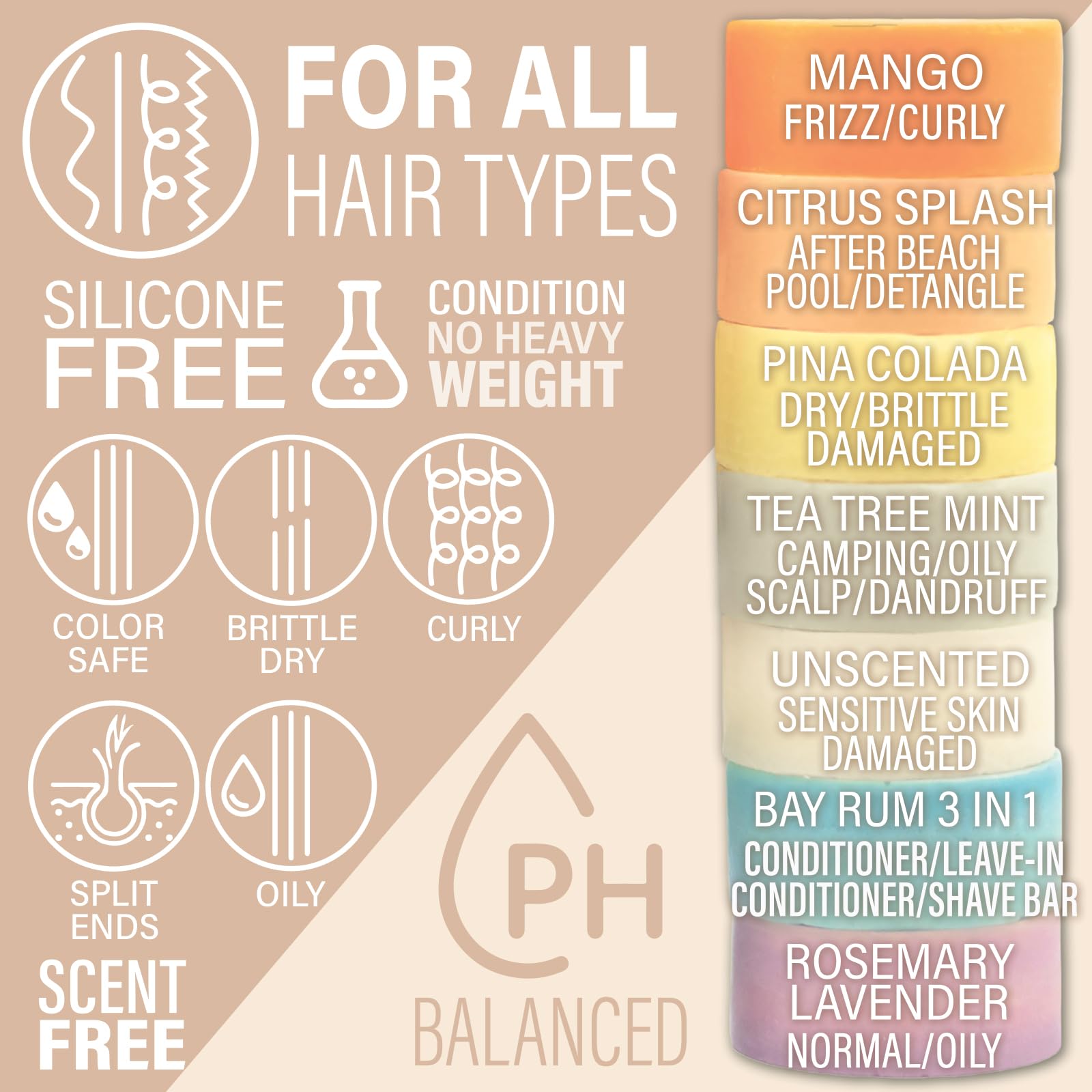 - SAFE FOR COLOR-TREATED HAIR. These natural shampoo and conditioner bars are safe for color-treated hair. Use the hair shampoo bar to rinse off the color-dulling buildup from styling products. Use the hair conditioning bar as a rinse-away or leave-in conditioner for curly, dry, damaged, or frizzy hair without added weight. The conditioner bar also makes for a great shave bar.