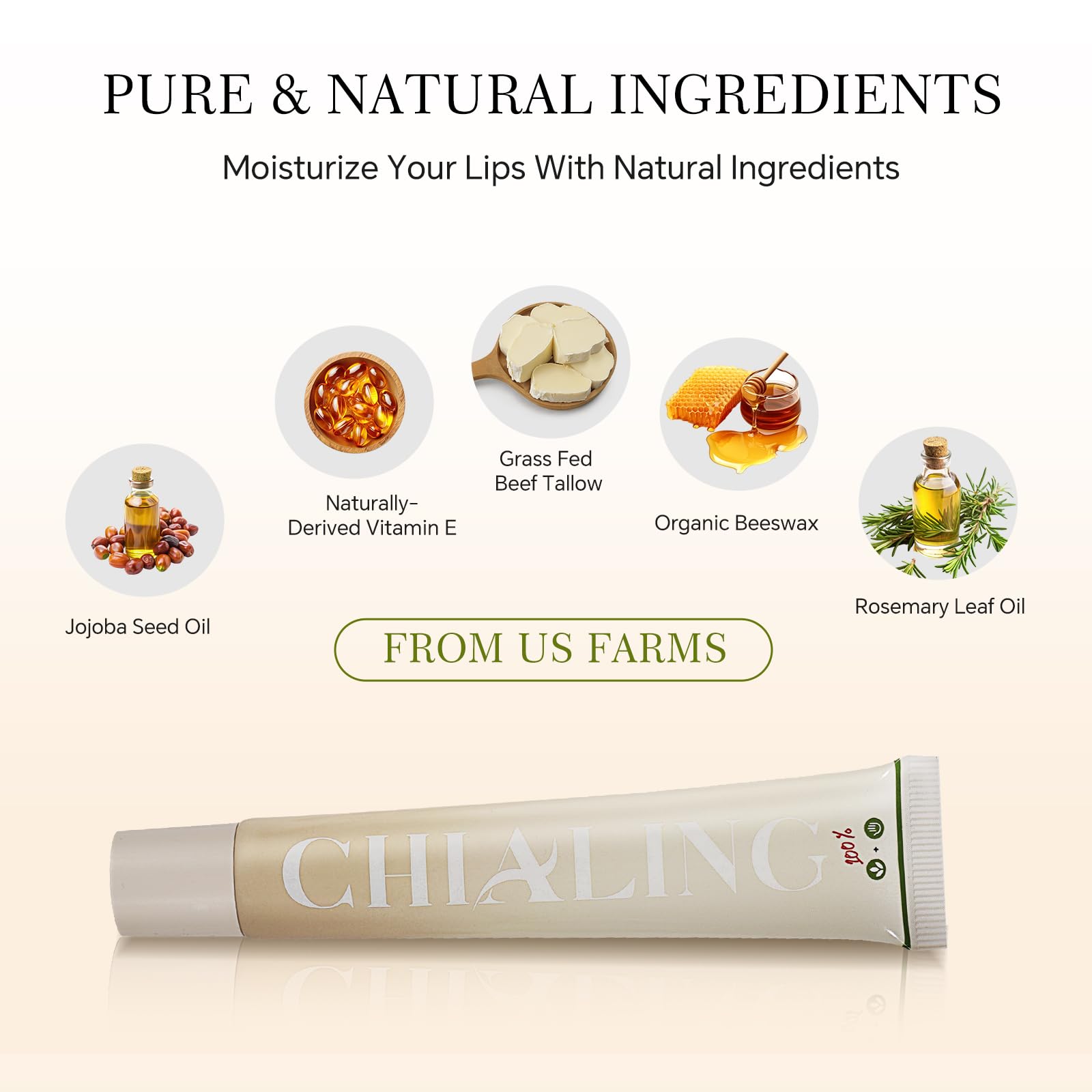 - Deep Moisturizing : CHIALING Tallow Lip Balm combines tallow and beeswax to create a moisture-locking barrier. Added jojoba seed oil deeply hydrates and protects lips from dryness and chapped lips