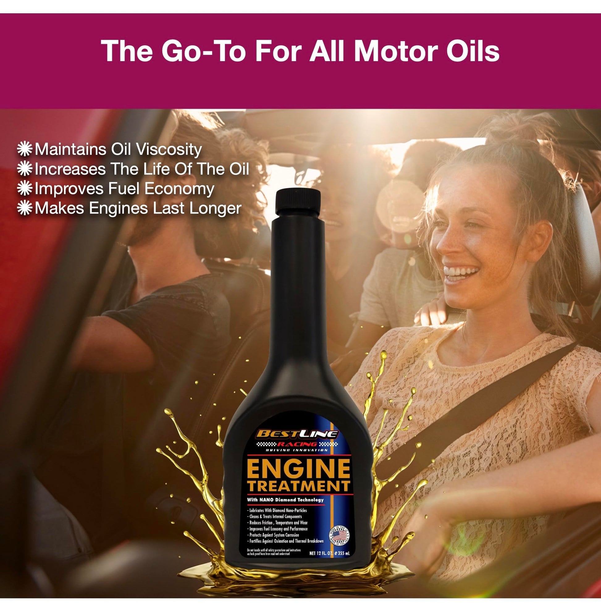 BestLine Racing - Engine Oil Additive for all Gas & Diesel Engines - Reduces Wear, Noise, Vibration - Boosts Fuel Economy & Horsepower - Made in the USA, Treats 5-quarts of oil.
