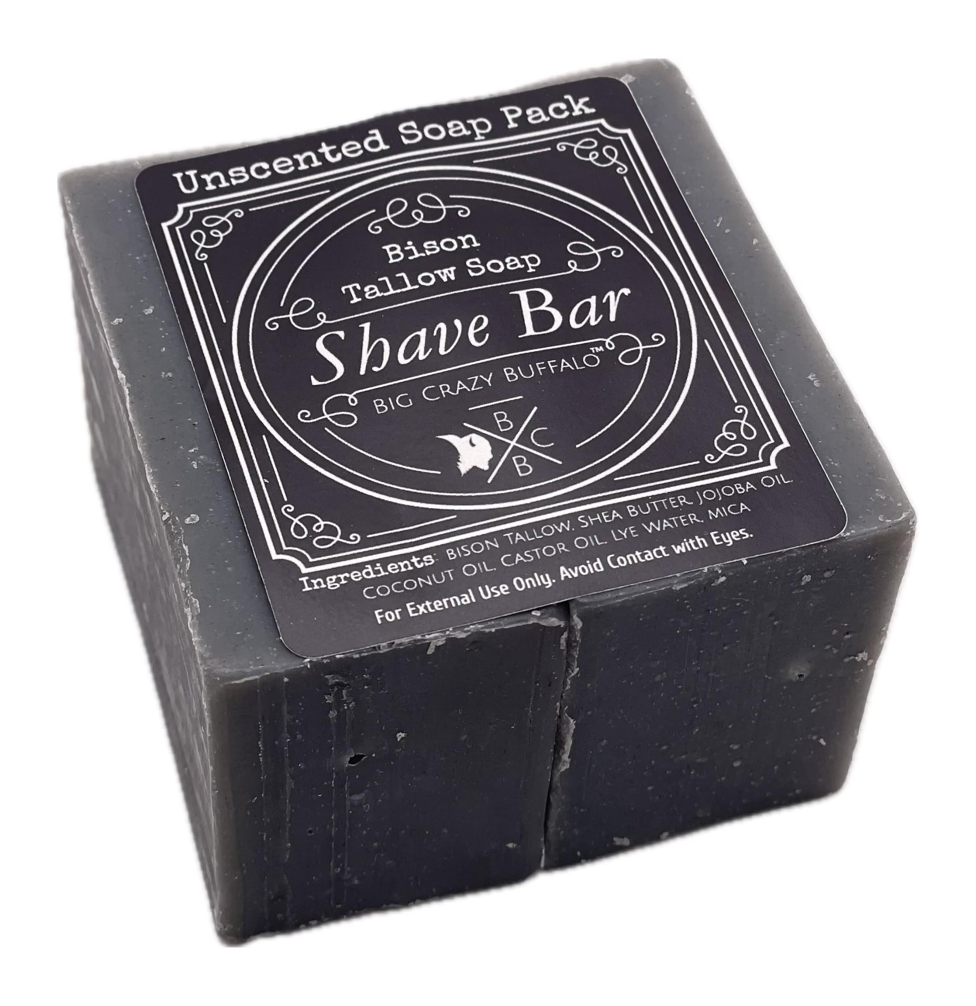 Big Crazy Buffalo Bison Tallow Buff Shave Bar, Unscented, (2 pack) - Razor Friendly, Moisturizing, Glides, Soothes, and Naturally Derived - No Dyes, Chemicals, Fragrances, Preservatives