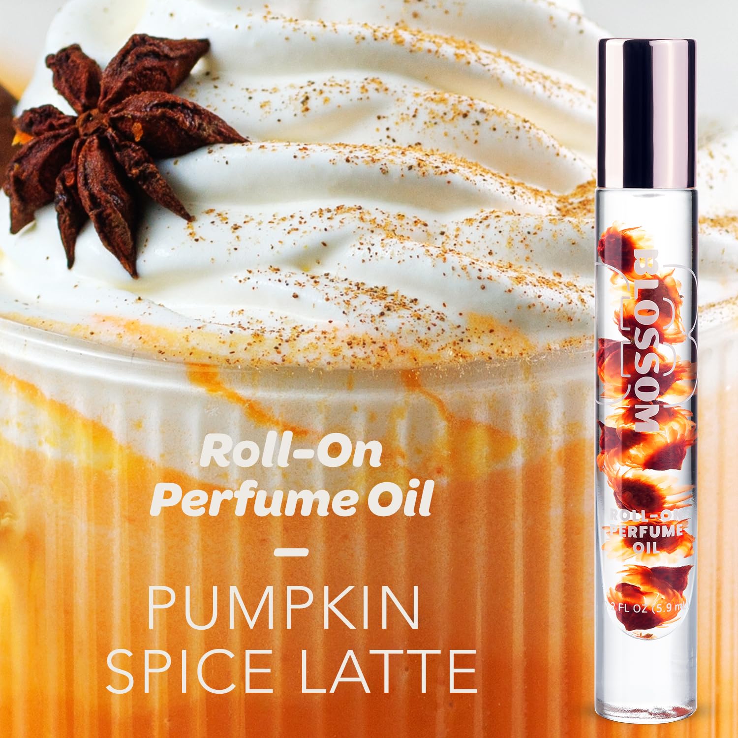 Blossom Roll on Perfume for Women Alcohol Free Gourmand Rollerball Perfume Oil with Essential Oils, Infused with Real Flowers, Made in USA, 0.20oz, (Pumpkin, Vanilla, Cinnamon) Pumpkin Spice Latte