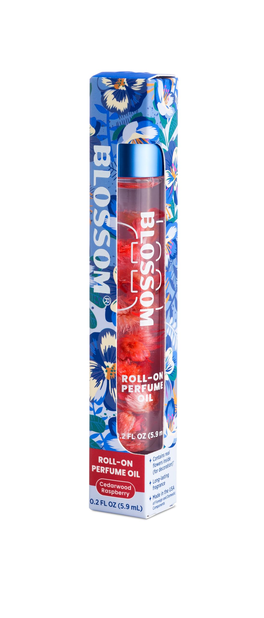 Blossom Roll on Perfume for Women Alcohol Free Rollerball Perfume Oil with Essential Oils, Infused with Real Flowers, Made in USA, 0.20oz (Bergamot, Pear, Vanilla, Orchid), Cedarwood Raspberry
