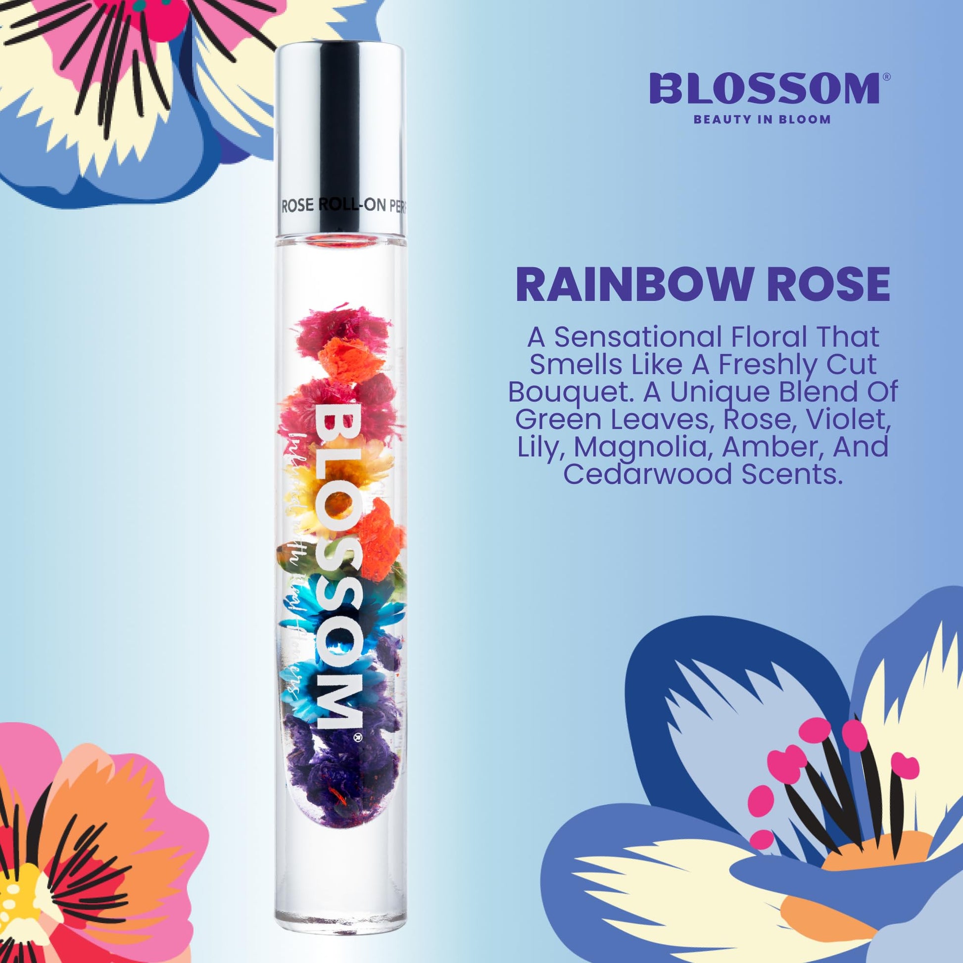 Blossom Roll on Perfume for Women Alcohol Free Rollerball Perfume Oil with Essential Oils, Infused with Real Flowers, Made in USA, 0.20oz (Rose, Violet, Lily, Magnolia, Amber, Cedarwood) Rainbow Rose