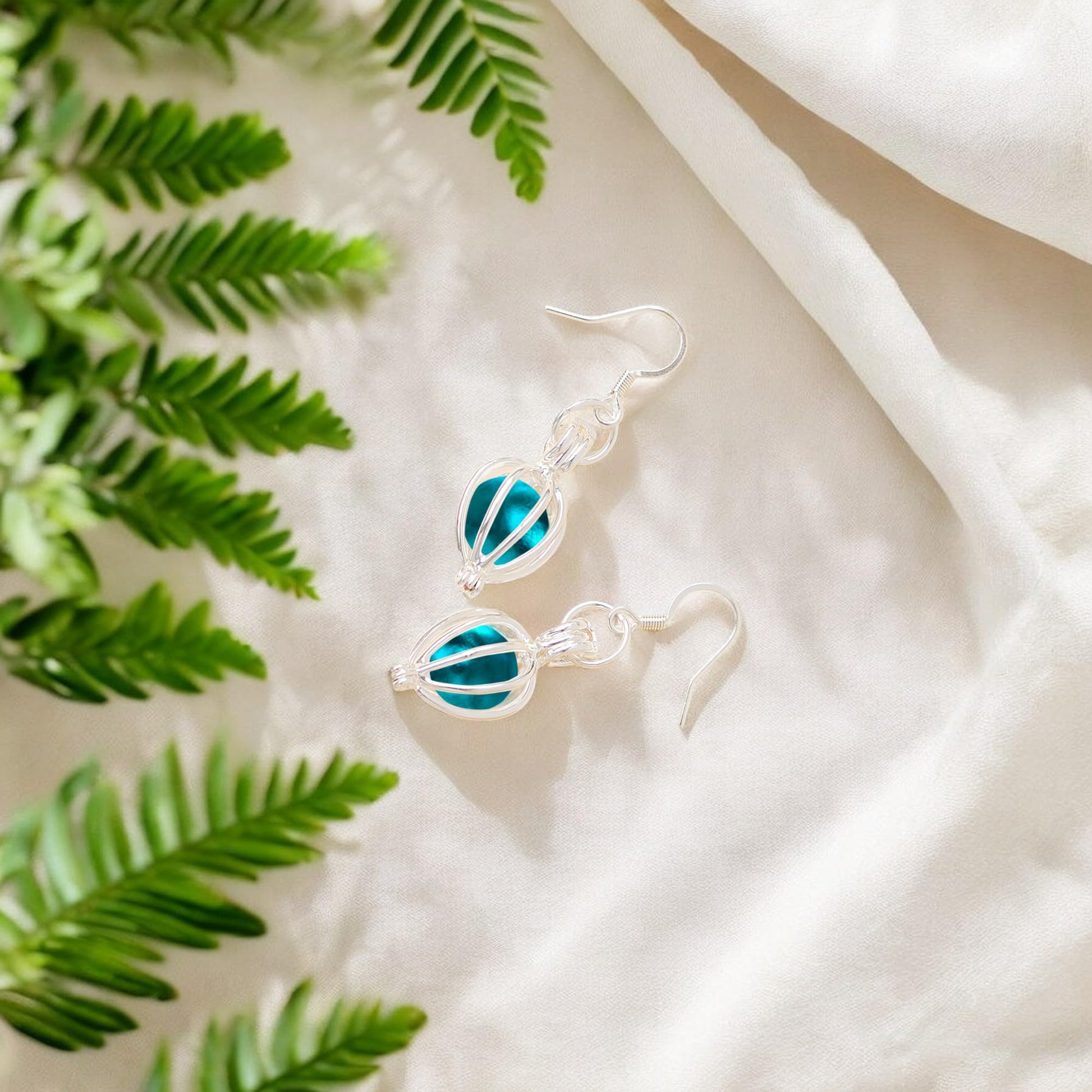Details: SAVE 25%, REGULARLY PRICED AT $28! From the antique glass and bottles reclaimed from the woods and farmlands in Pennsylvania, these pretty simple drops are filled with the glowing aquamarine remains from broken vintage blue mason jars. The glass has been reclaimed, ground and fired. Teardrops measure .5" wide at the widest point and have a total hang length of approx. 1 1/4". Each piece of Bottled Up Designs includes "The Story of the Glass" detailing the history and age of the glass used. Drops are sterling plated brass, ear wires are surgical steel.