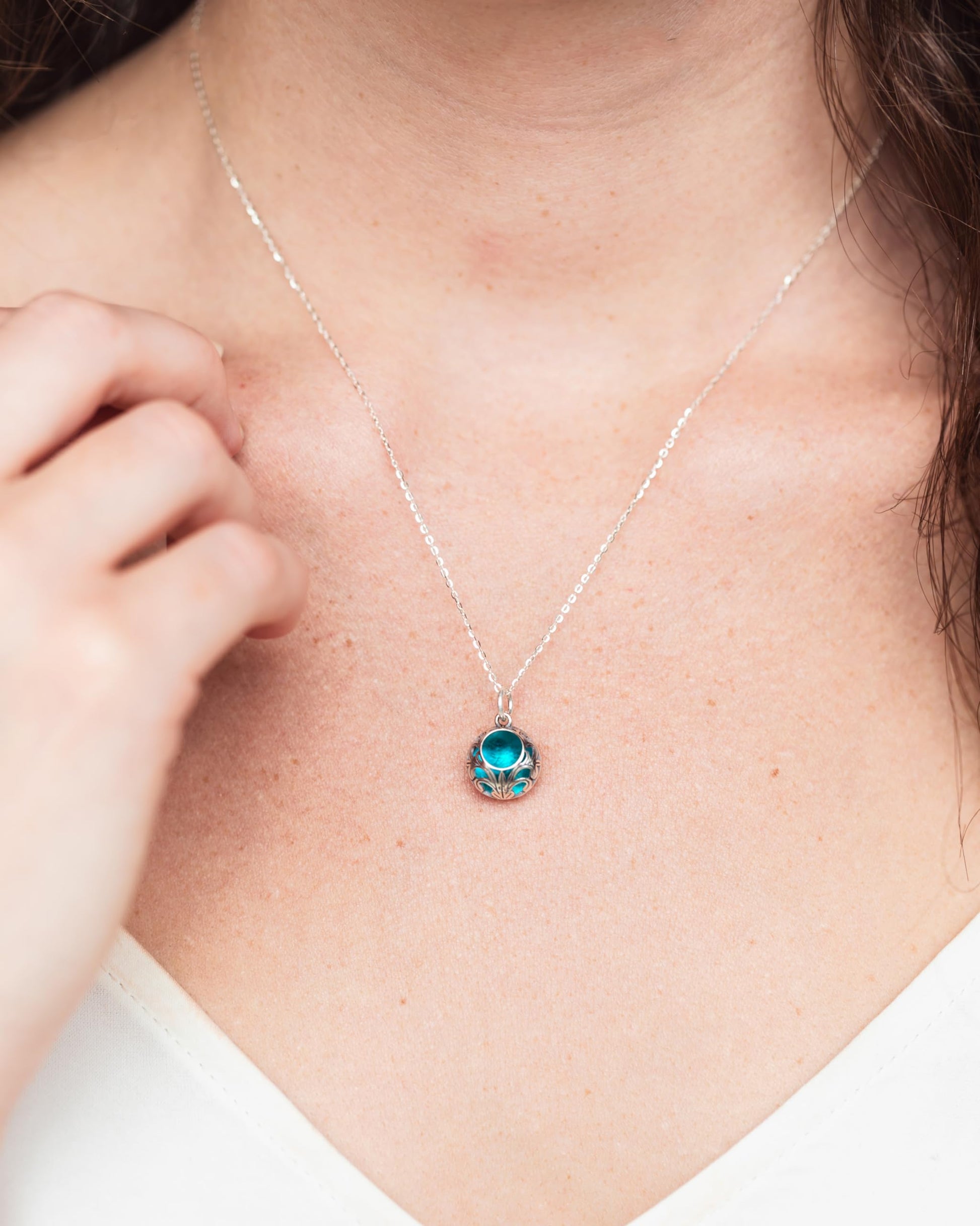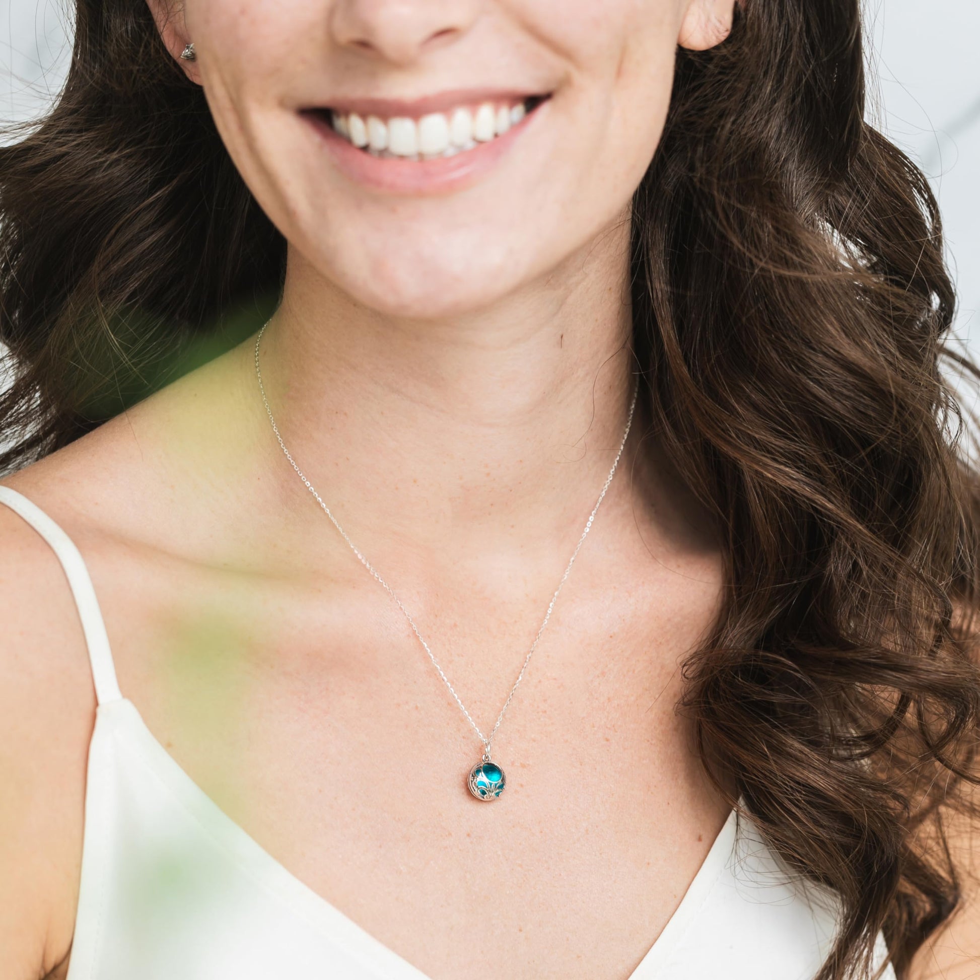 Details: Bottled Up Designs, handmade from the broken reclaimed antique glass and bottles taken from old bottle dumps found in the wooded habitats and farmlands in rural Pennsylvania! Reminiscent of the patterns found in antique lace, our beautiful vintage lace sterling silver necklace holds our handmade recycled glass gems in a stunning example of modern recycling! Glowing inside the .925 settings the pendant measures 1/2" and hangs from an 18" sterling silver chain. Beautiful glass from the remains of aqua vintage mason jars. Each piece includes "The Story of the Glass" detailing the history and age of the glass used!