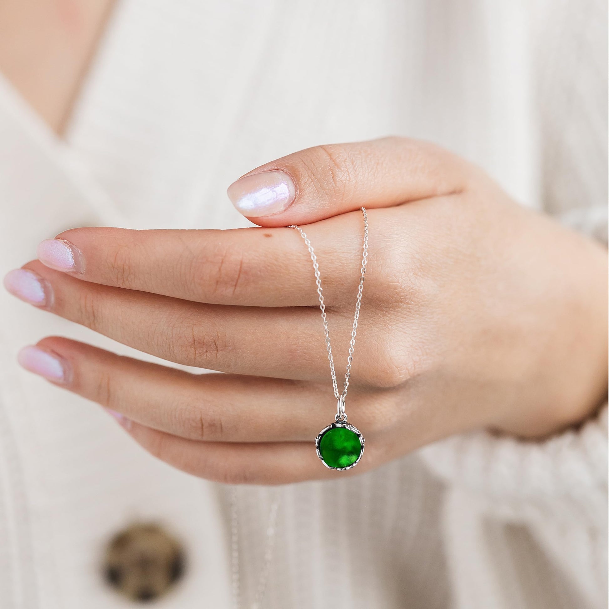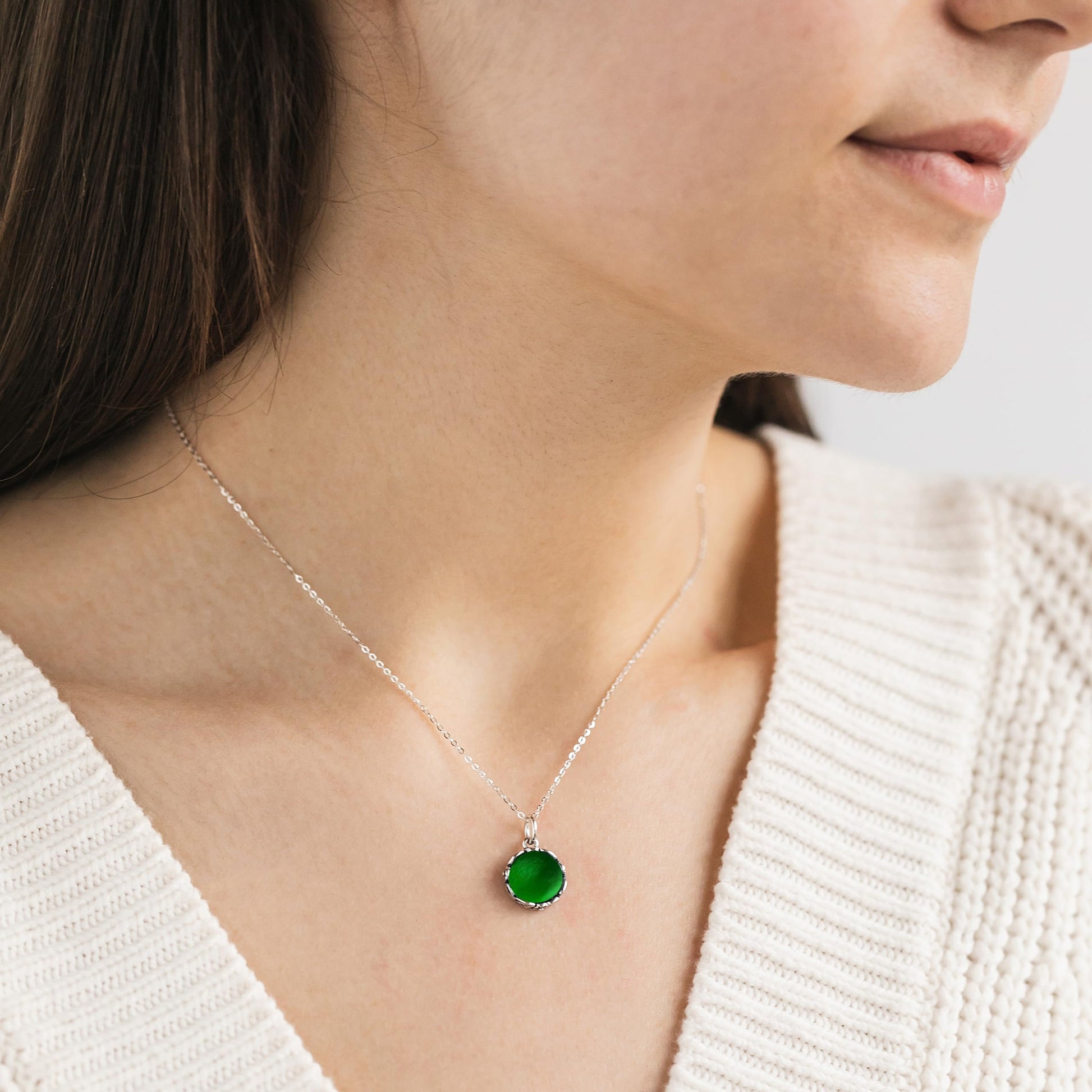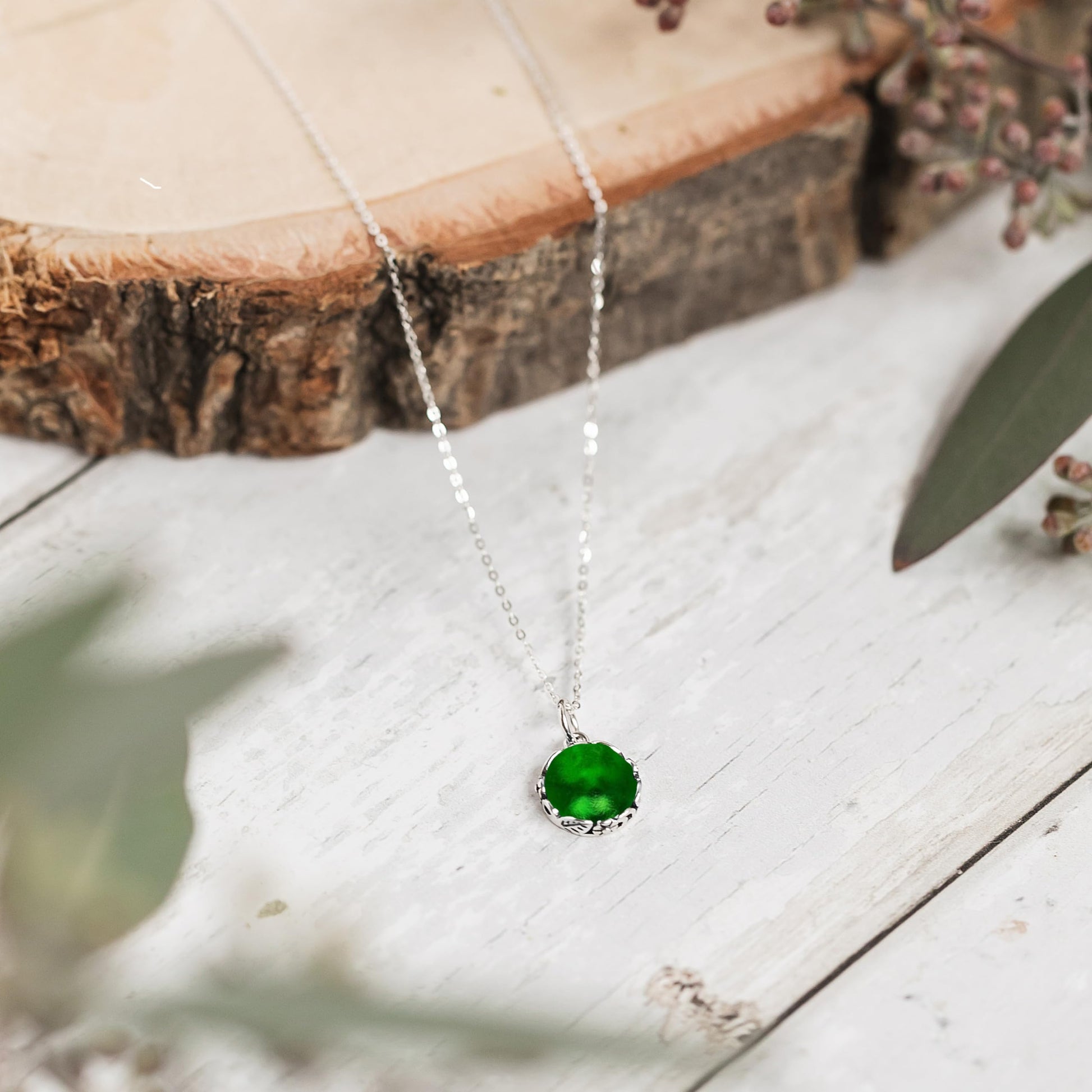 - Show off your commitment to sustainability with this eco friendly green necklace, made from vintage beer bottle glass and sterling silver. Its unique origin and eye catching color make it a great conversation starter, ideal for environmentally conscious fashion lovers.