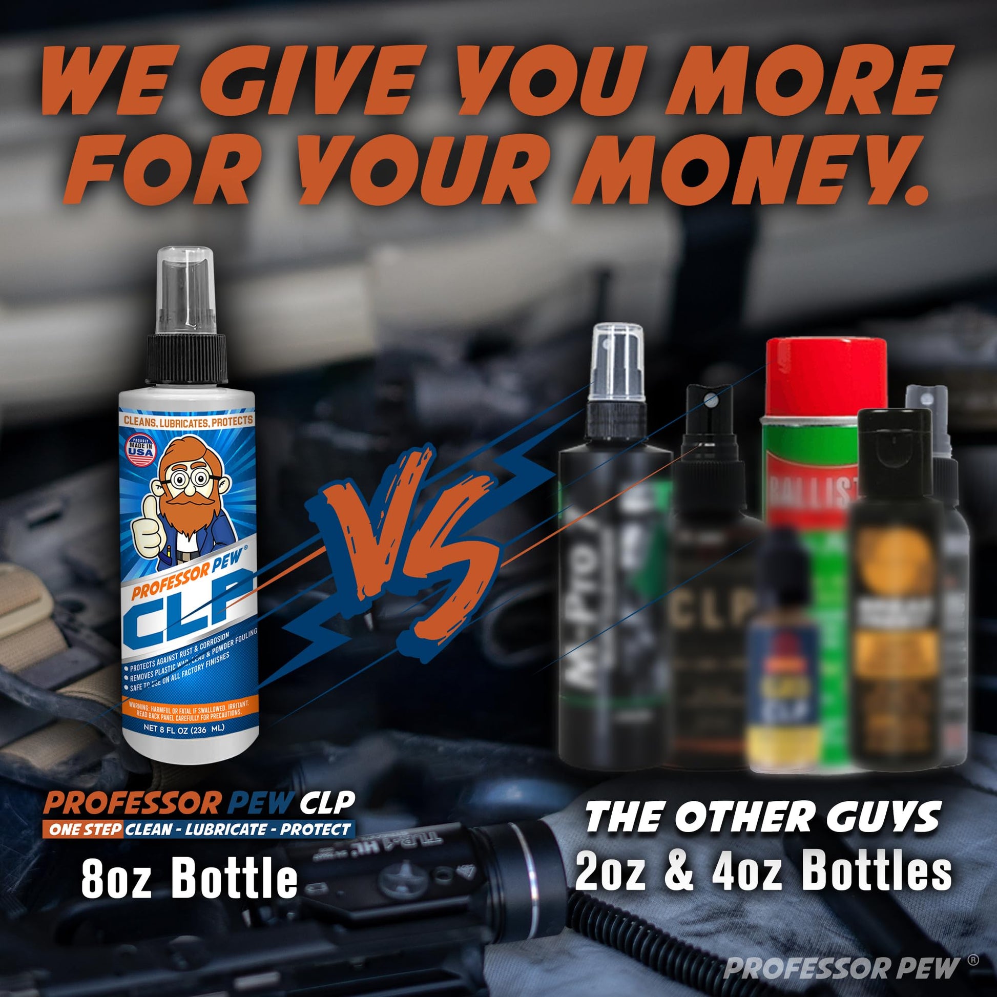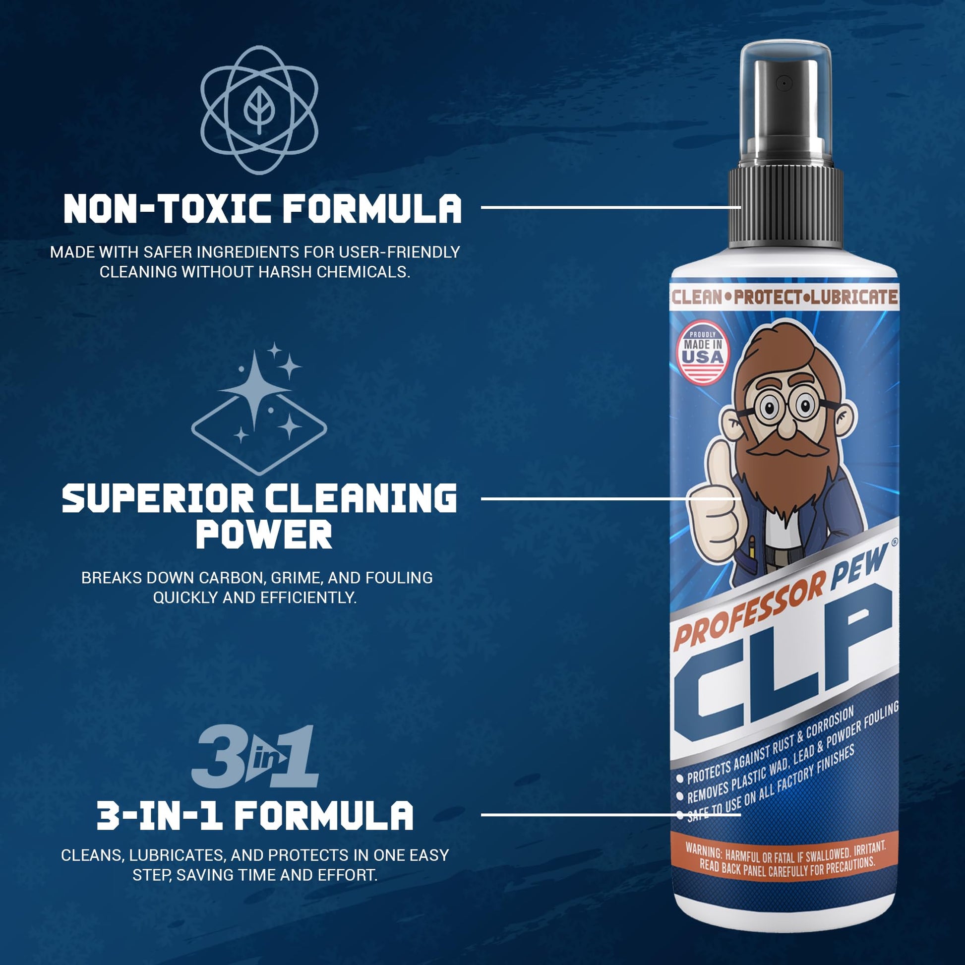 BRAVOBELT Professor Pew CLP - Gun Oil and Cleaner | Gun Rust Remover | Degreaser for pistols, rifles, tools, and shotguns - 8 oz bottle