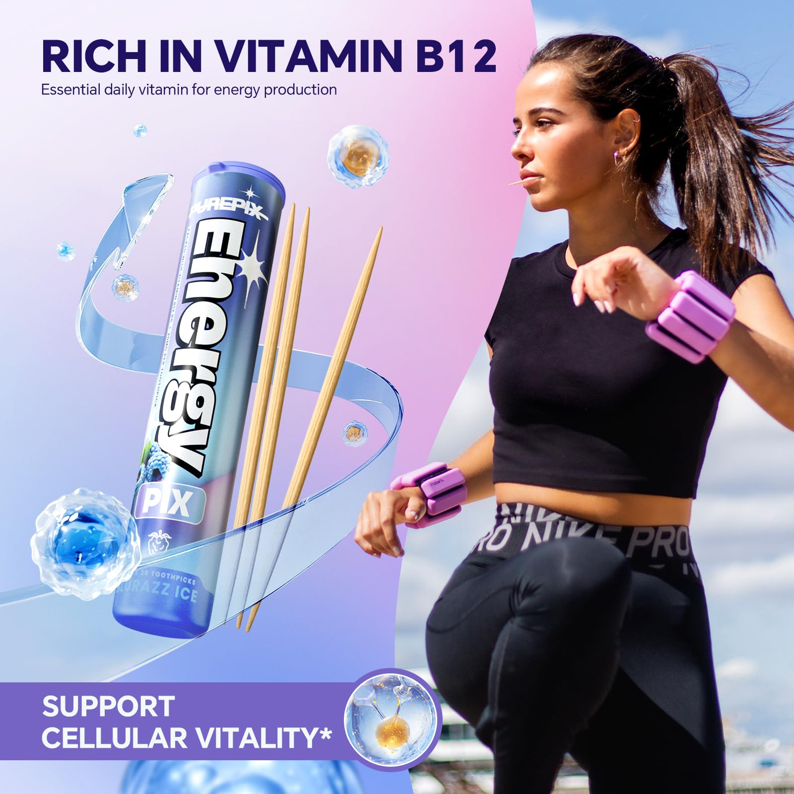 Caffeinated Flavored Toothpicks for Energy & Focus | Sugar-Free Energy Toothpicks with Vitamin B12 & L-Theanine | Kosher, Vegan, 20 Coun (BlueRazz Ice 3 Pack)