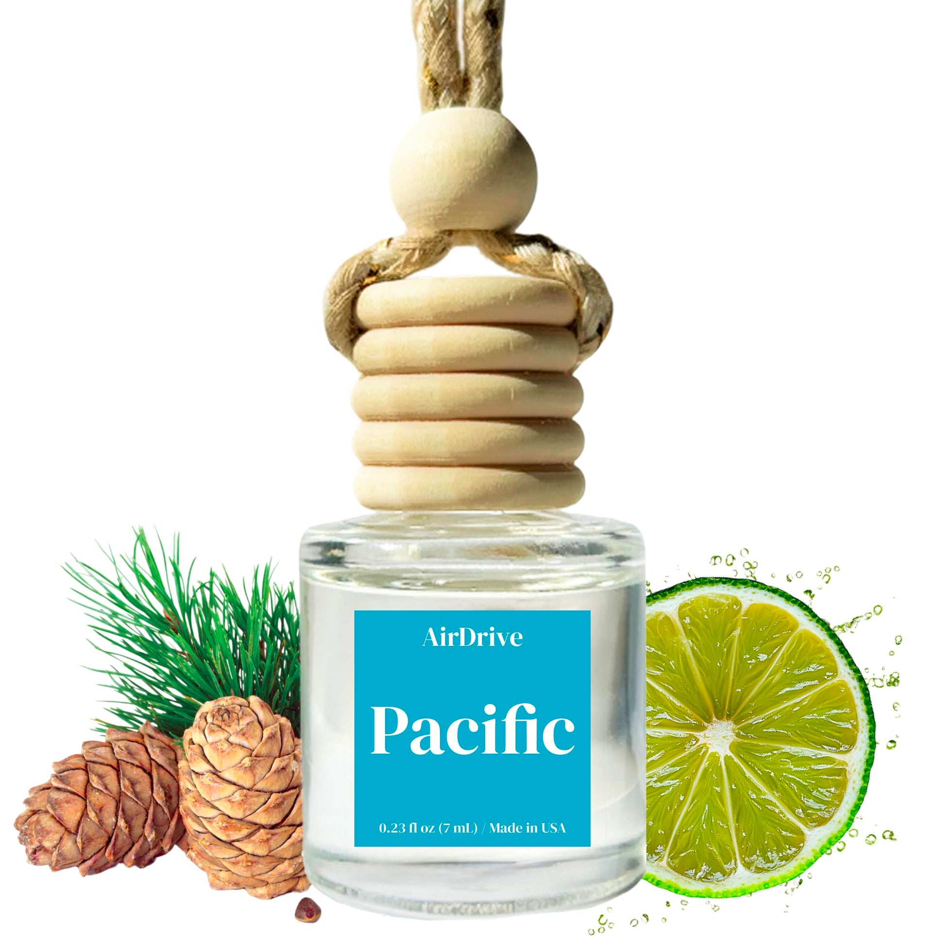 Car Air Freshener Pacific – Ocean & Citrus Aroma Diffuser, Long-Lasting Hanging Oil Diffuser with Wooden Cap, Non-Toxic Rearview Mirror Accessory, Made in USA