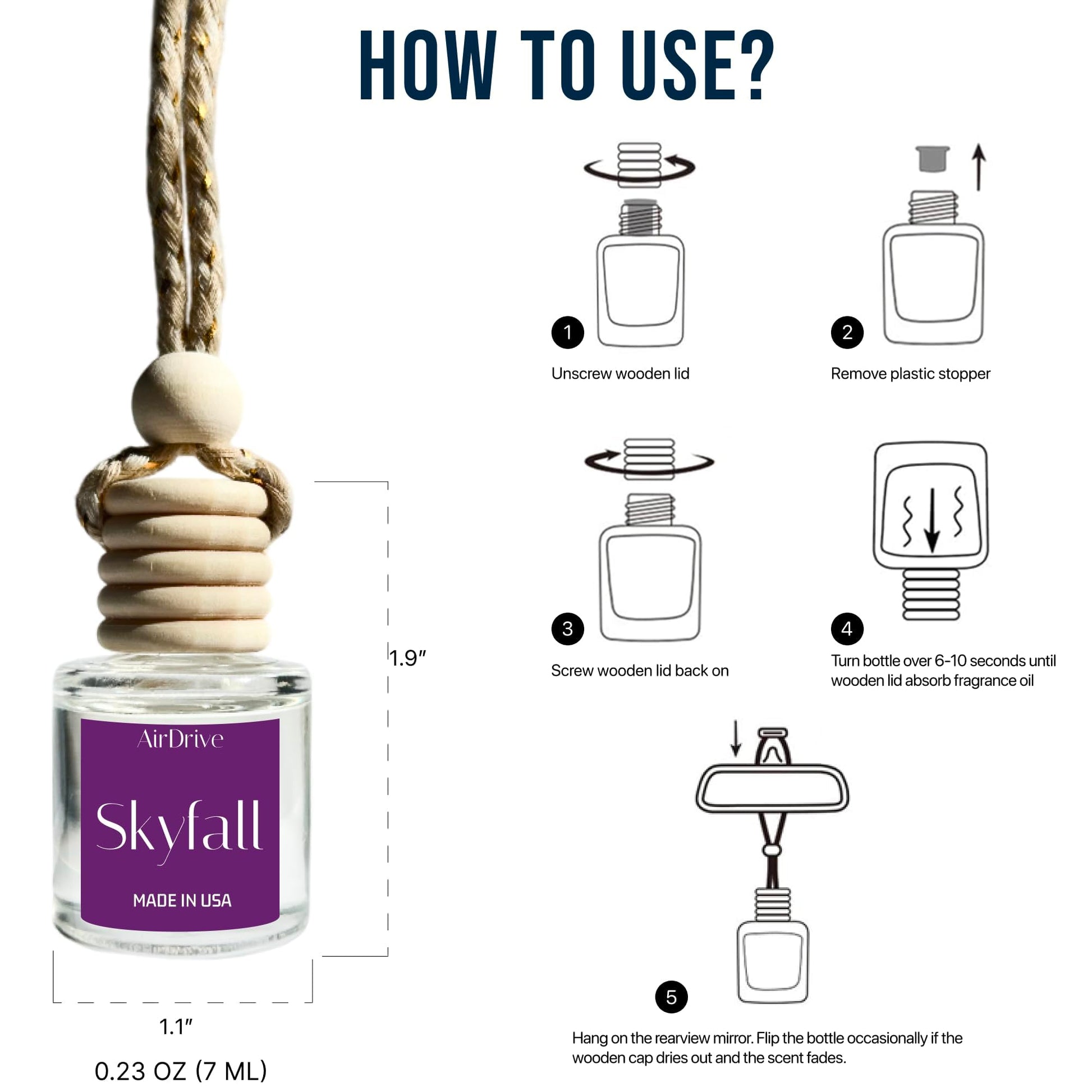 Car Air Freshener Skyfall – Floral Aroma Diffuser, Long-Lasting Lavender & Vanilla Hanging Oil Diffuser with Wooden Cap, Non-Toxic Rearview Mirror Accessory, Made in USA