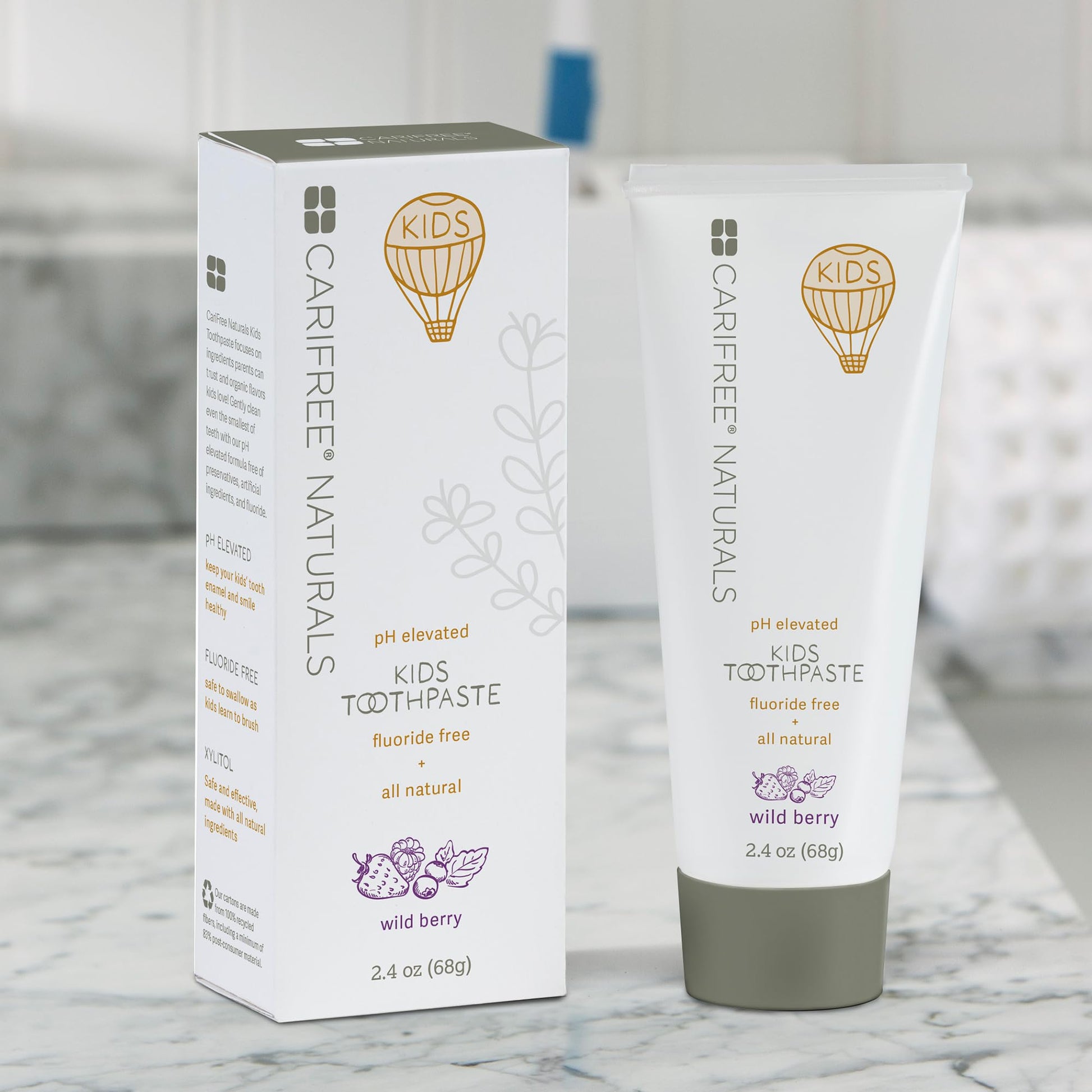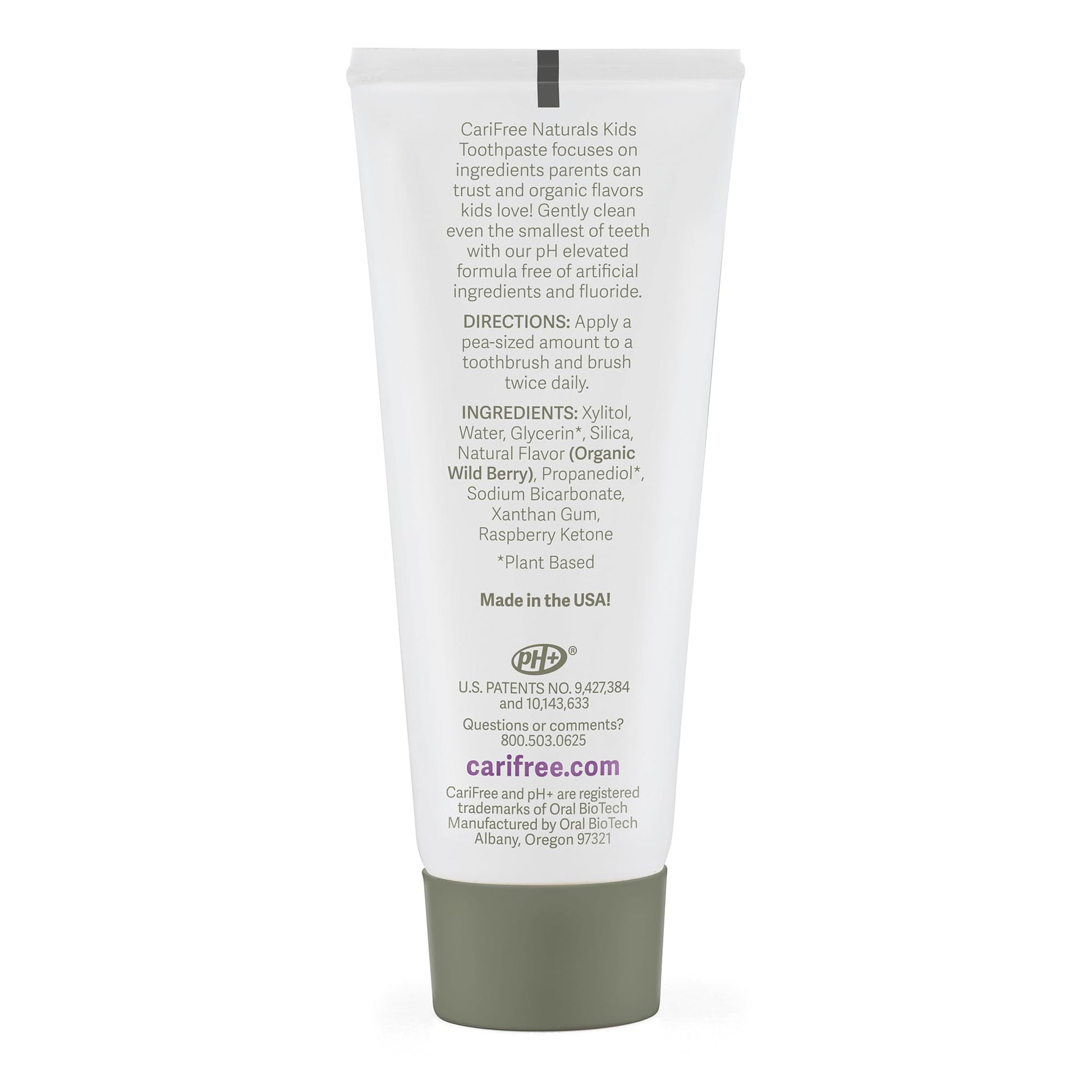 CariFree Naturals Kids Toothpaste | Fluoride-Free, 40% Xylitol, Organic Wild Berry Flavor, pH Elevated, Safe if Swallowed, Sugar-Free, 2.4 oz, Made in The USA
