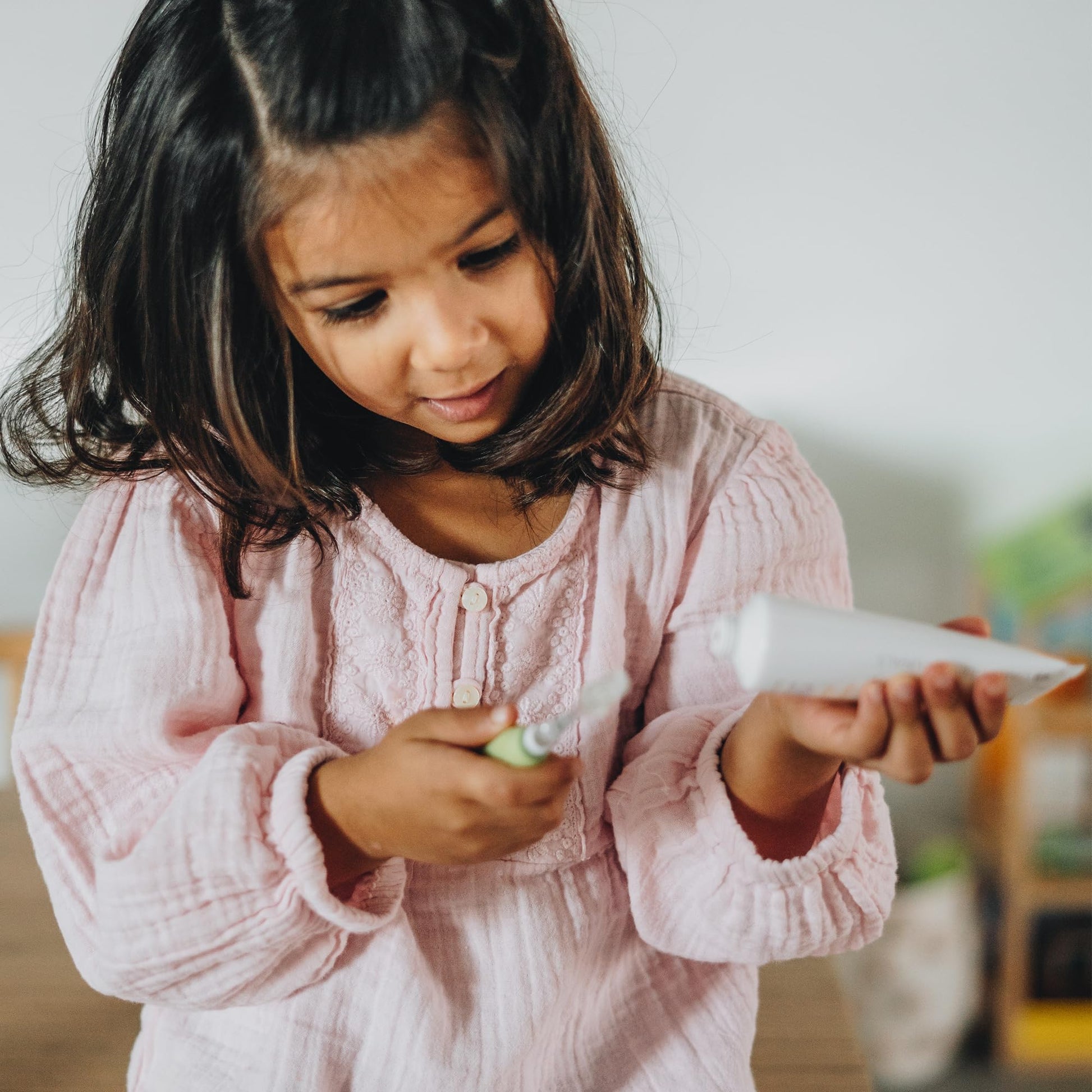 - 40% Xylitol for Oral Health: Enriched with 40% xylitol, a natural sweetener that is non-fermentable by oral bacteria, this toothpaste helps create a healthier oral environment by reducing the risk of cavities and supporting the natural defenses of your child’s teeth.