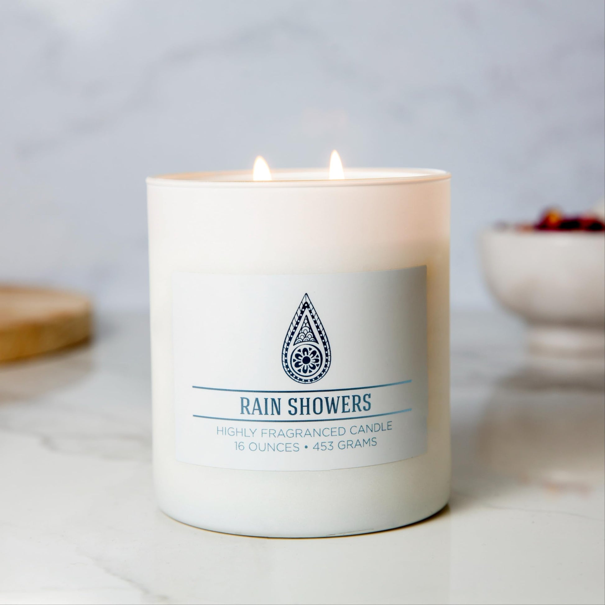 - Burn: Featuring two premium cotton wicks, our Rain Showers soy wax blend has an approximate burn time of 60 hours.