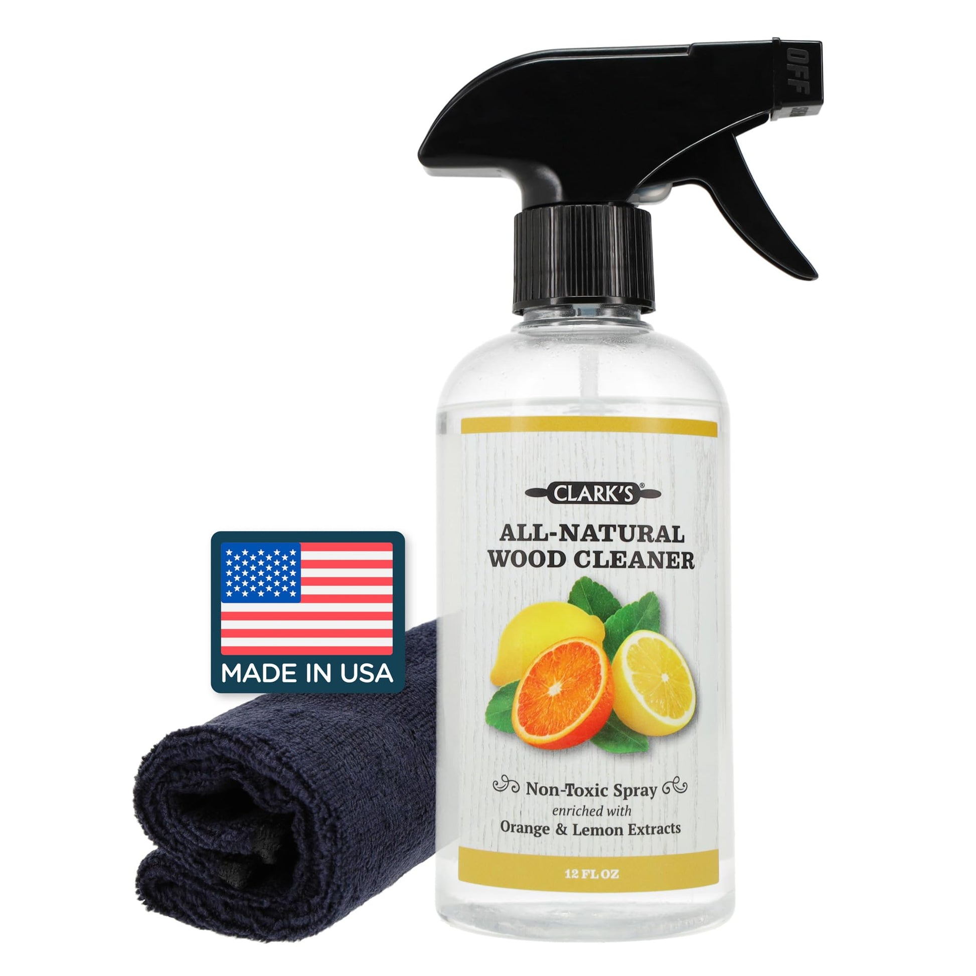 CLARK'S Natural Cutting Board Spray Cleaner, with Microfiber Cloth, for Wood Countertop – Pure Ingredients Filtered Water, Distilled Vinegar, Castile Soap, Lemon & Orange Citrus Oil Extracts, 12oz