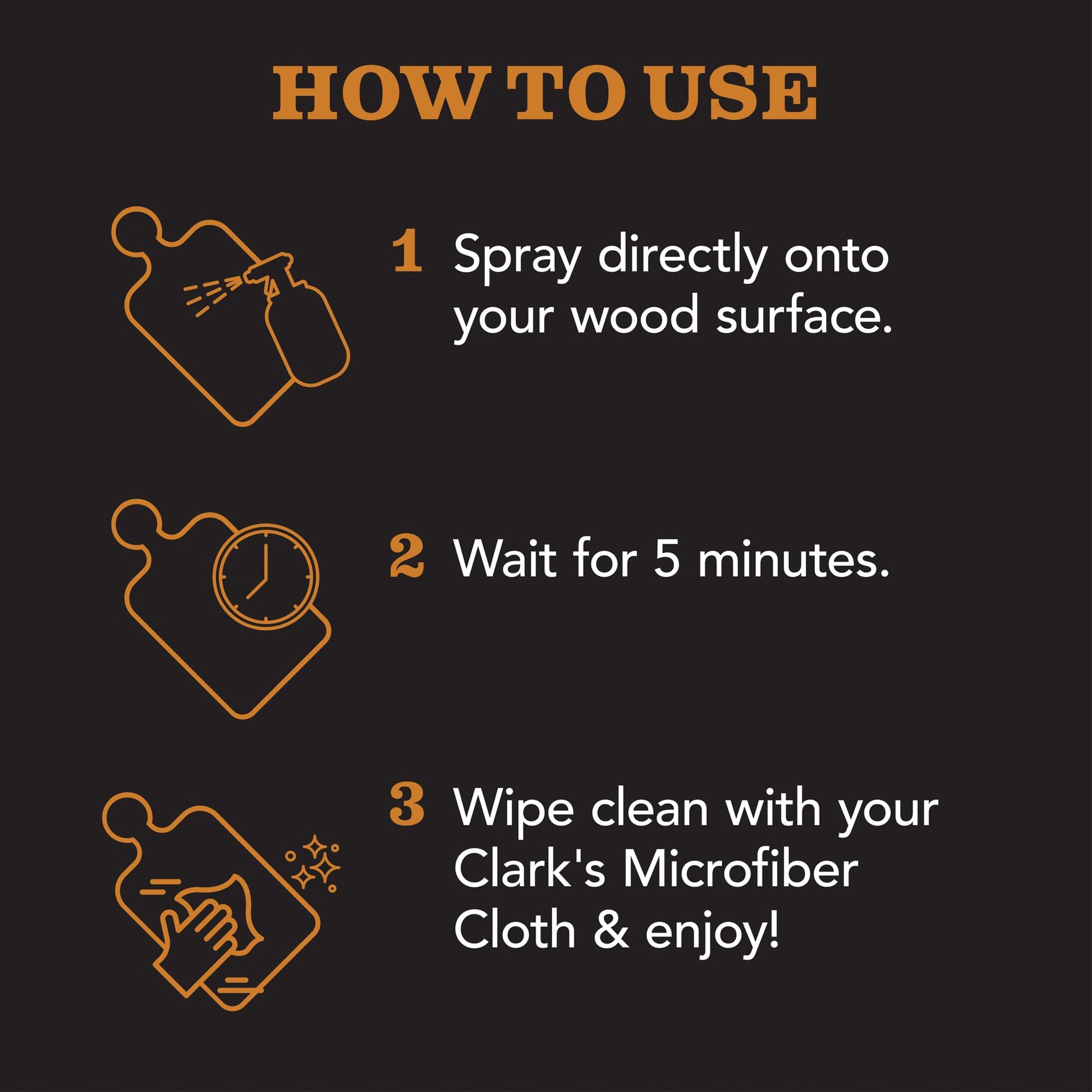 - CLEAN THE RIGHT WAY – Simply spray the wood surface, wait 5 minutes then wipe clean. Now you’re ready to prepare your next meal. Yum!