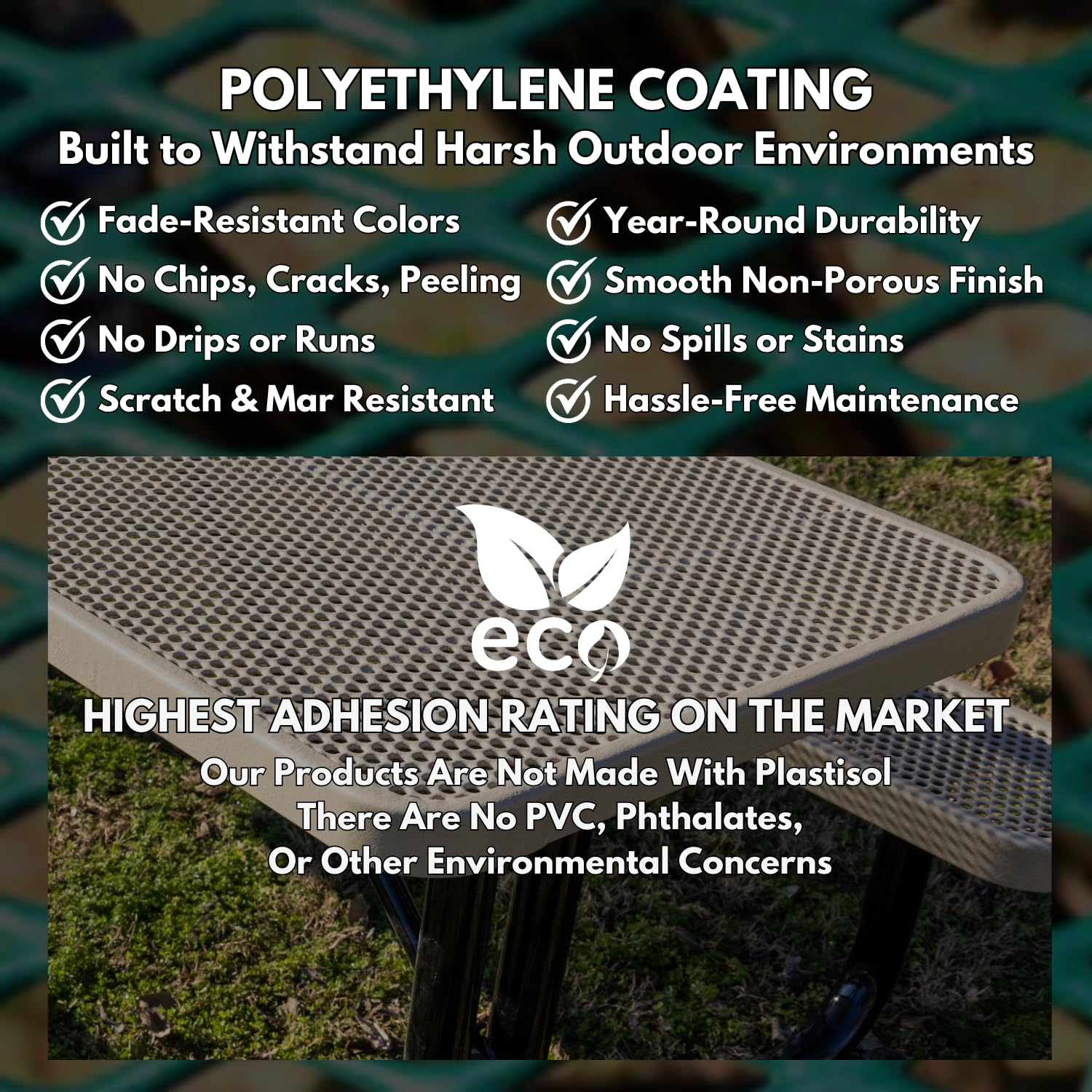 - CLASSIC OUTDOOR PICNIC TABLE: Our heavy-duty industrial picnic tables are commercial-grade but friendly enough for residential living. We offer 14 unique color options & 2 coating styles—smooth & glossy, premium textured.