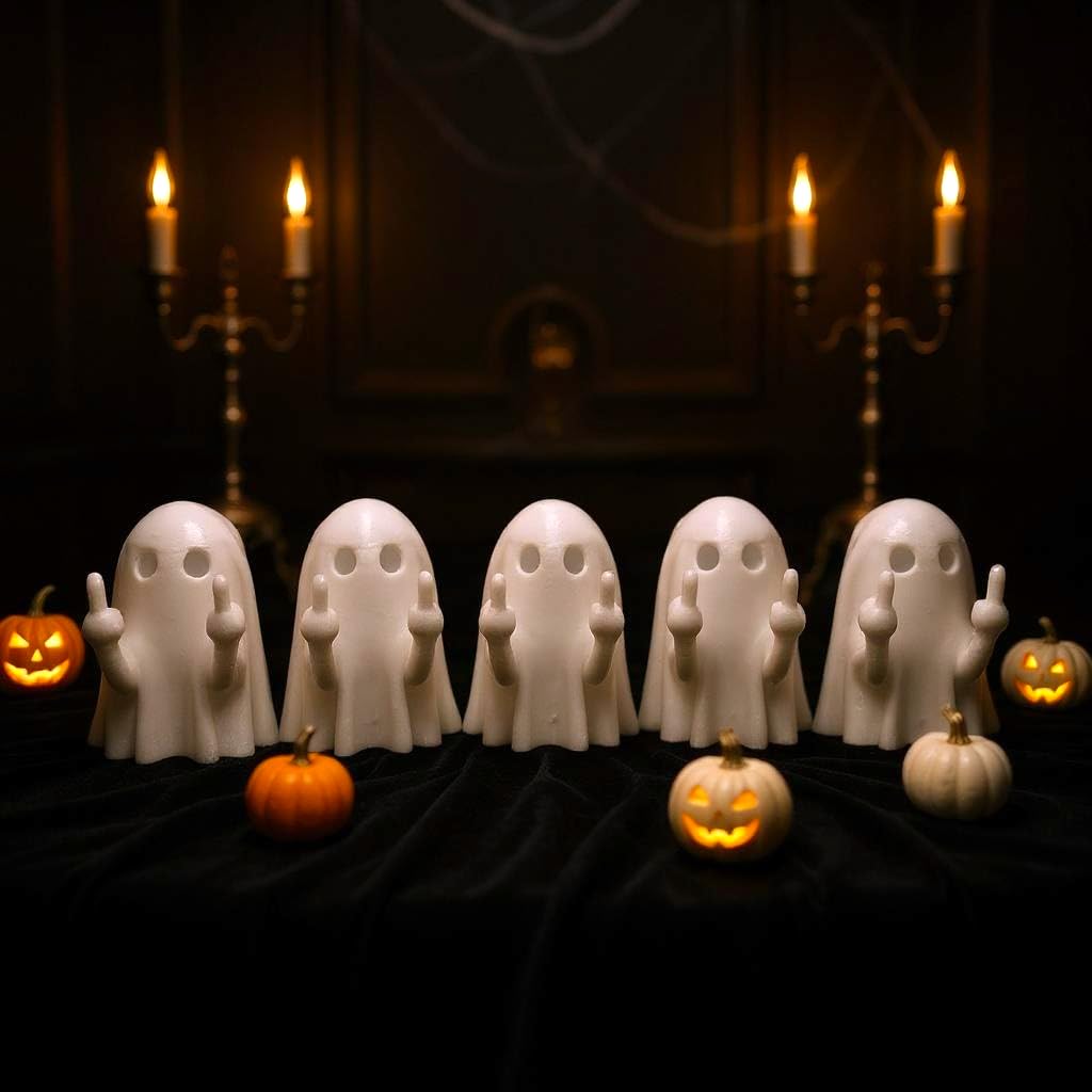- PACKAGE CONTENTS: Set of 5 spooky flip off ghost figurines featuring a humorous middle finger gesture, perfect for Halloween decorations