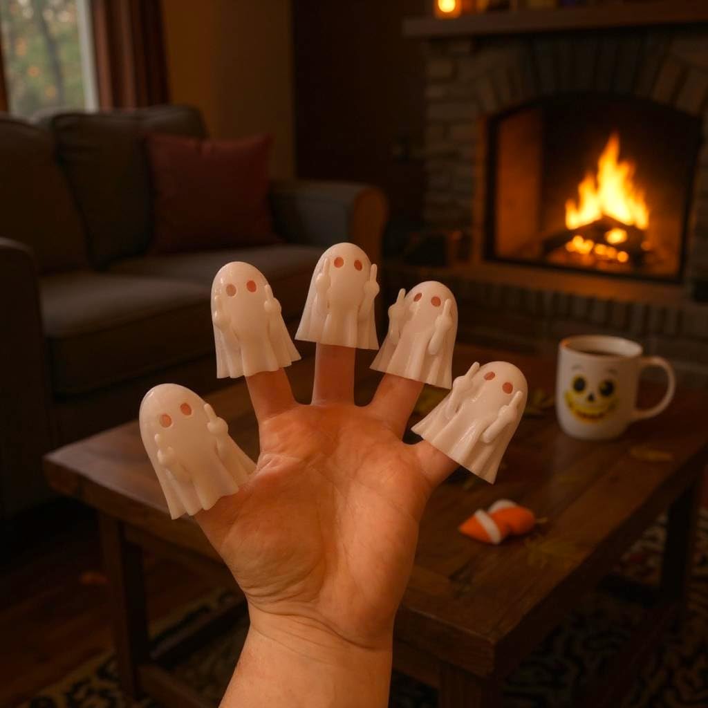 Details: Add a playfully spooky twist to your Halloween decorations with these hilarious middle finger ghost flip off figurines from Colonial Depot. This pack of 5 mischievous spirits brings an irreverent touch to your holiday display, perfect for those who love to mix humor with their haunted decor. Each ghost figure features a raised middle finger design that's sure to spark laughter among your guests. These versatile decorations can be displayed on shelves, tables, or even worn on your fingers for interactive fun. Made in the USA, these unique conversation starters are ideal for Halloween parties, office decorations, or as a memorable gag gift for friends with a sense of humor. Transform your space into a hauntingly humorous scene with these cheeky ghost figures that perfectly blend spooky and silly. Spook around and find out.