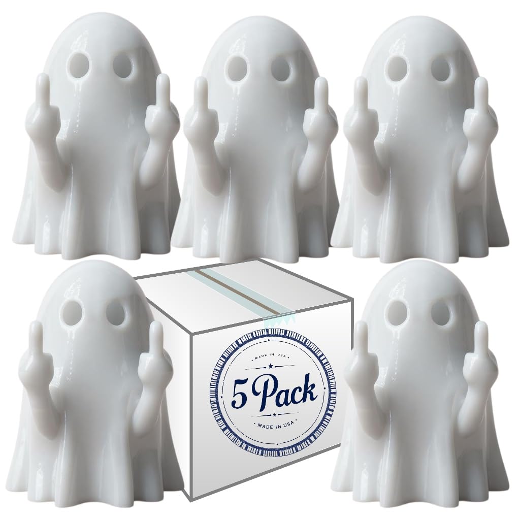Colonial Depot Finger Flip Off Ghost Figurines, 5 Pack, Funny Halloween Decor Gag Gift, Made in USA
