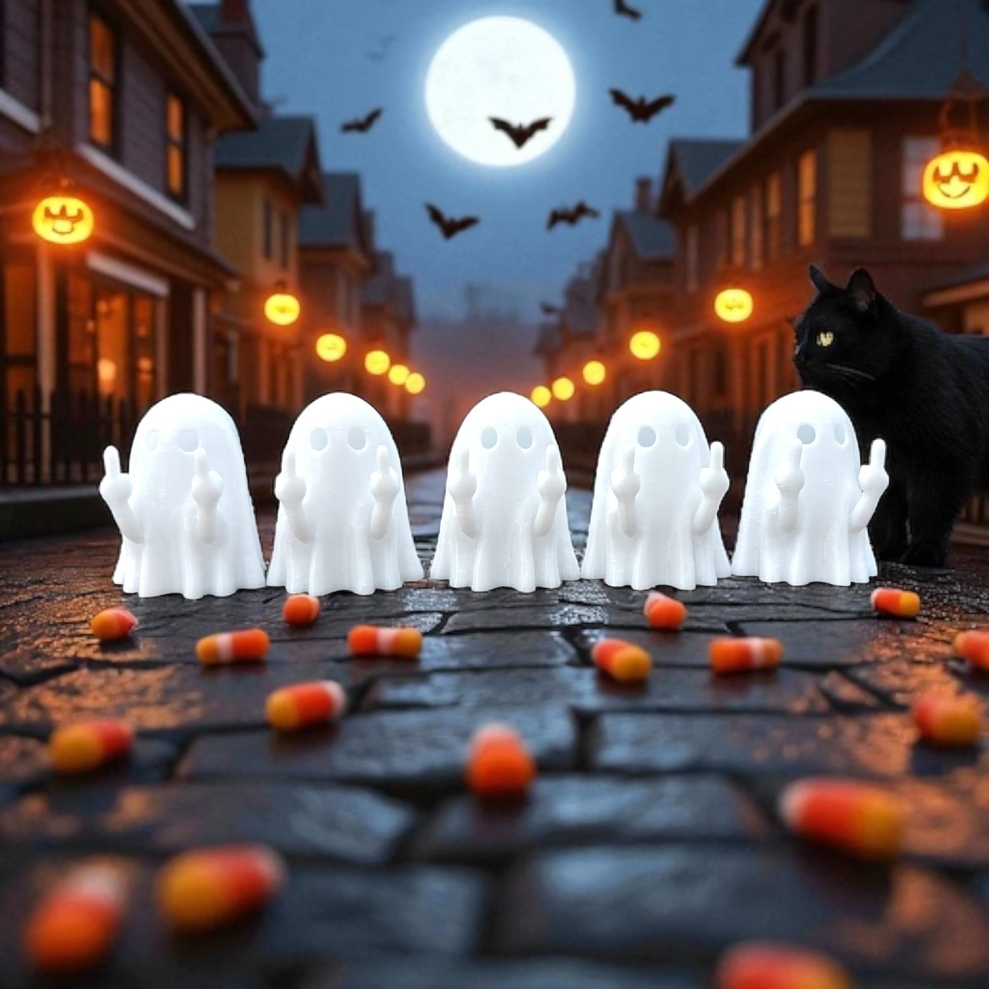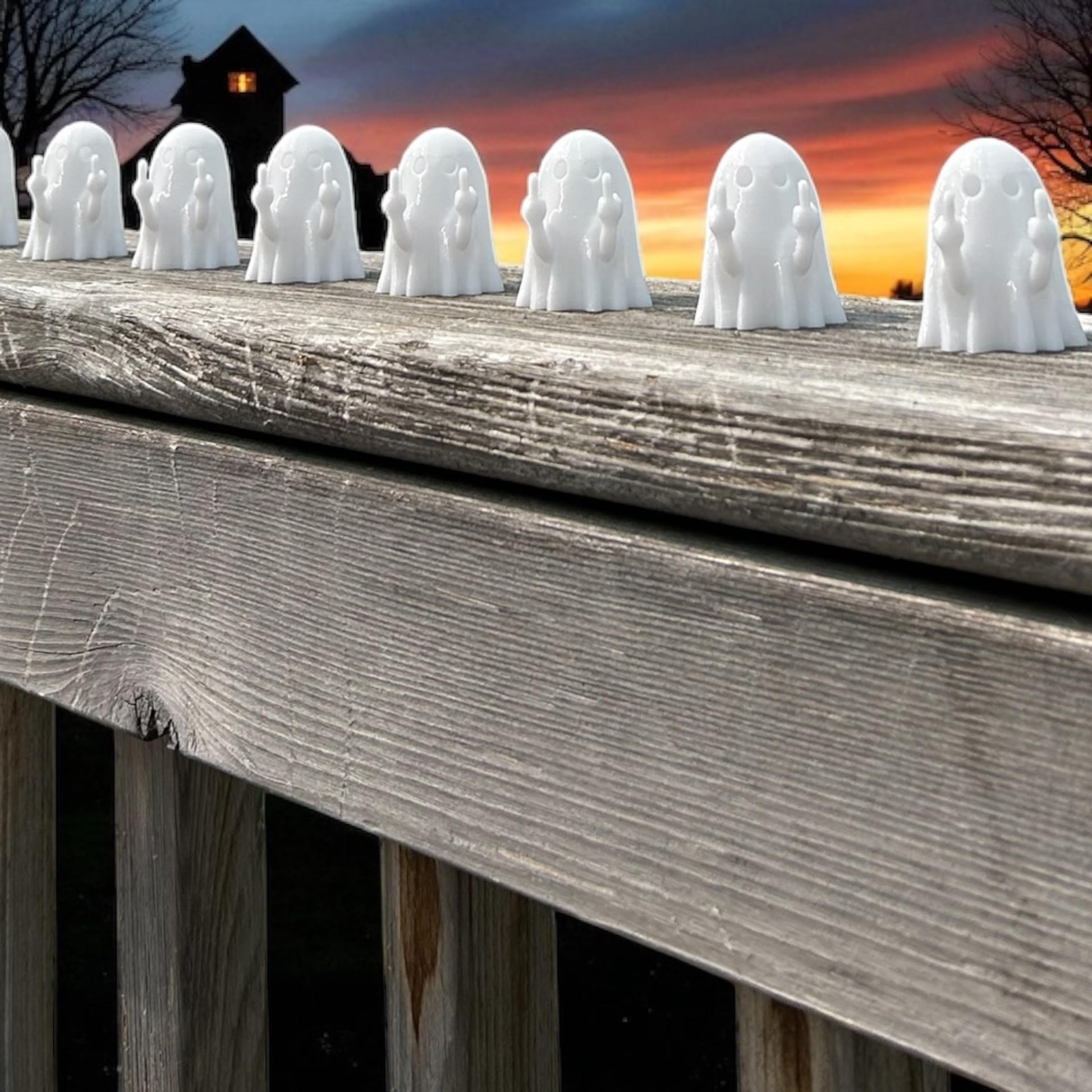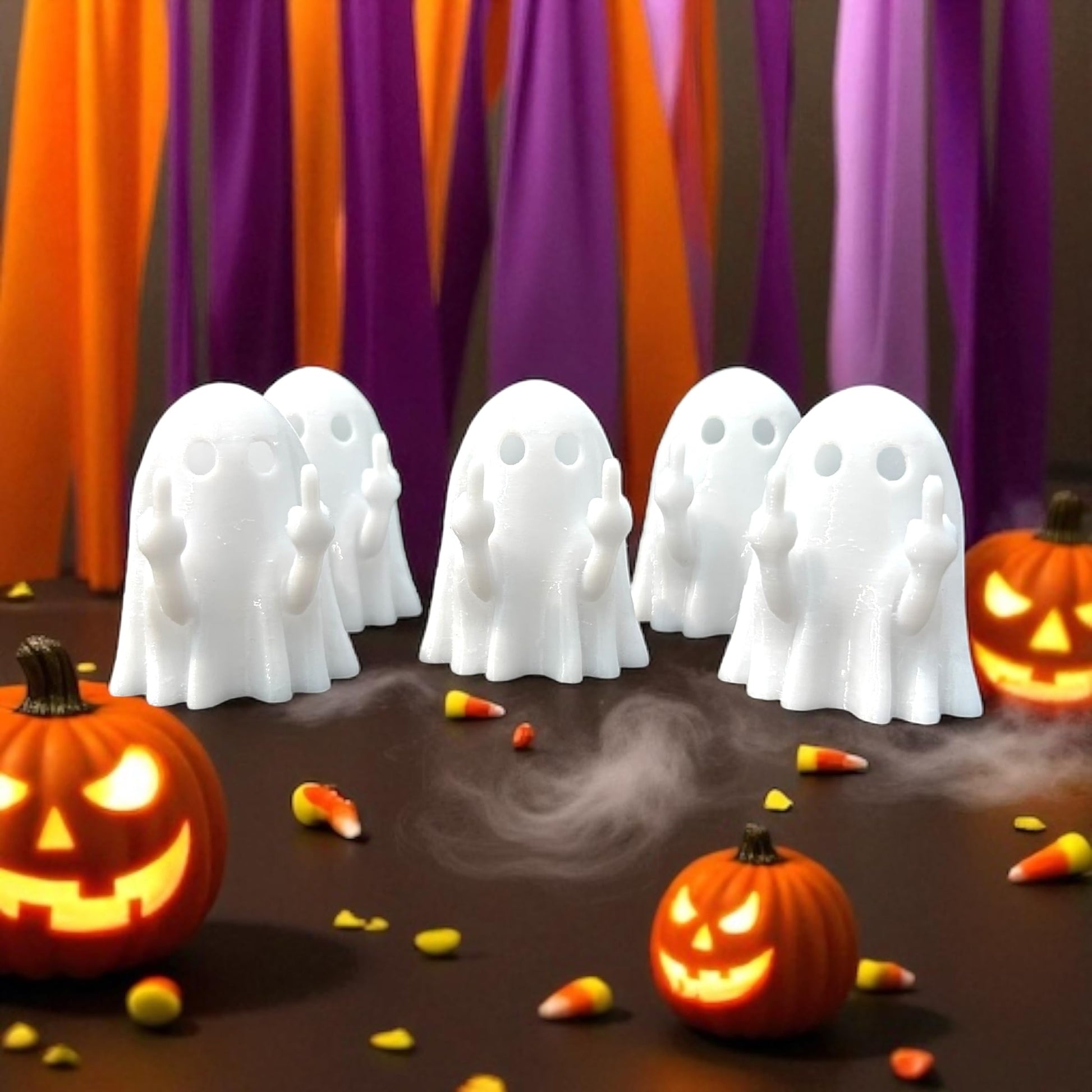 - DESIGN: White ghost figures crafted with an amusing middle finger pose that adds a playful twist to traditional Halloween decor