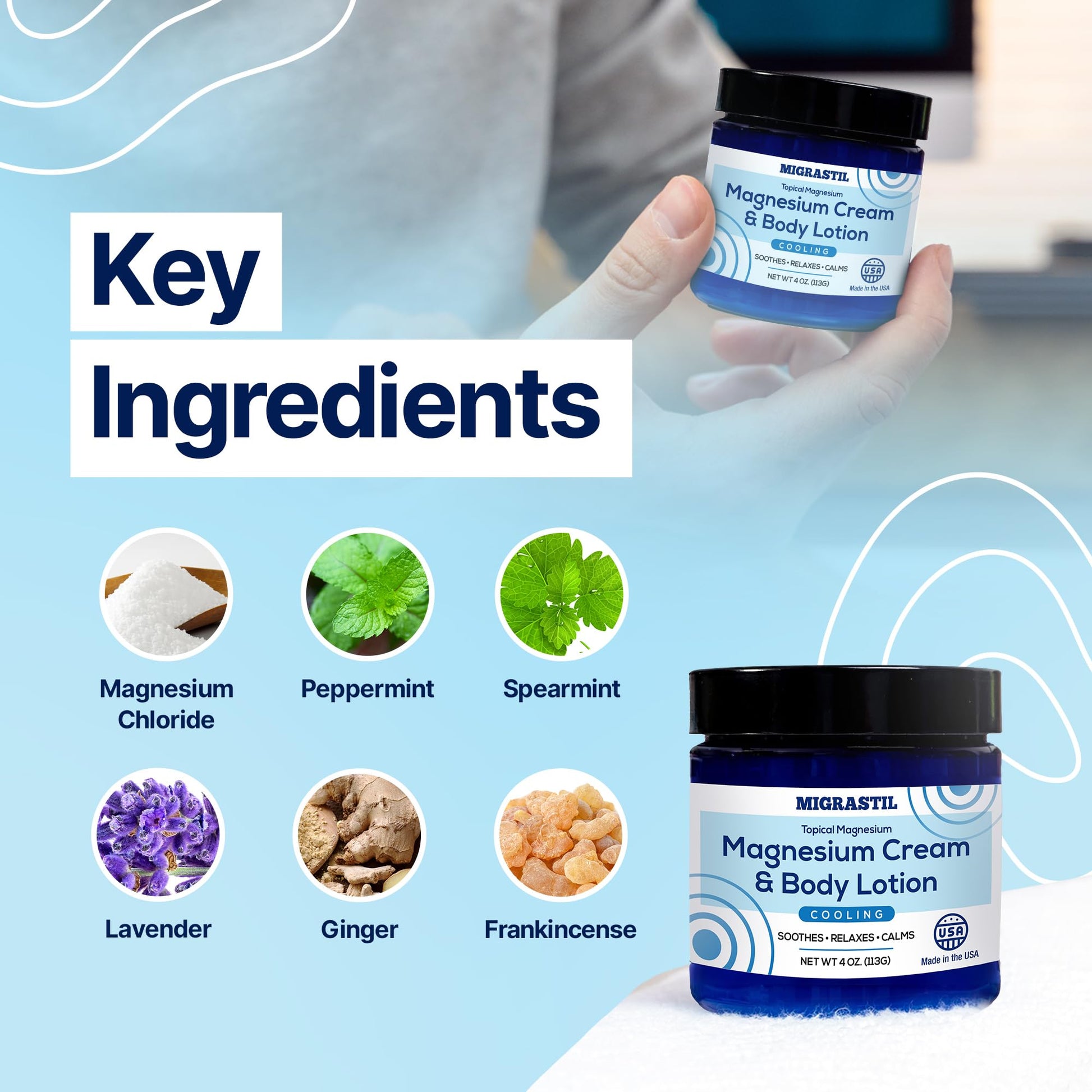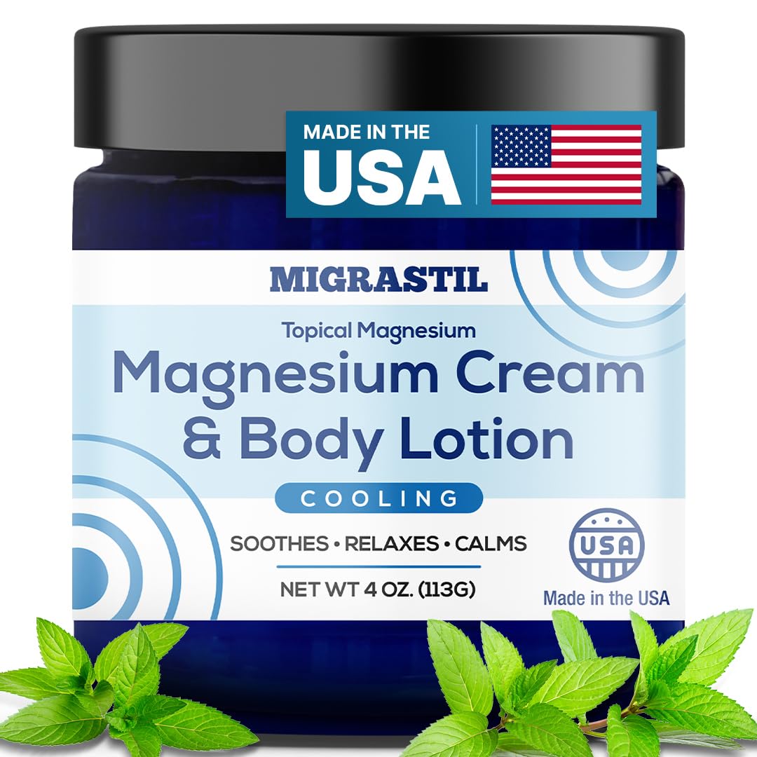 - High Quality: Migrastil Cooling Magnesium Cream is made in the USA with the finest ingredients. Natural, Vegan, and Cruelty-Free, it offers a premium blend of magnesium oil for feet and skin rejuvenation with a light pleasant scent.