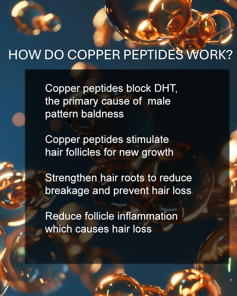 - FOR THIN/THINNING HAIR AND MALE PATTERN BALDNESS. Copper peptides inhibit the formation of DHT, a hormone linked to androgenetic alopecia (male pattern baldness). By reducing DHT levels, copper peptides can help slow the progression of hair loss.