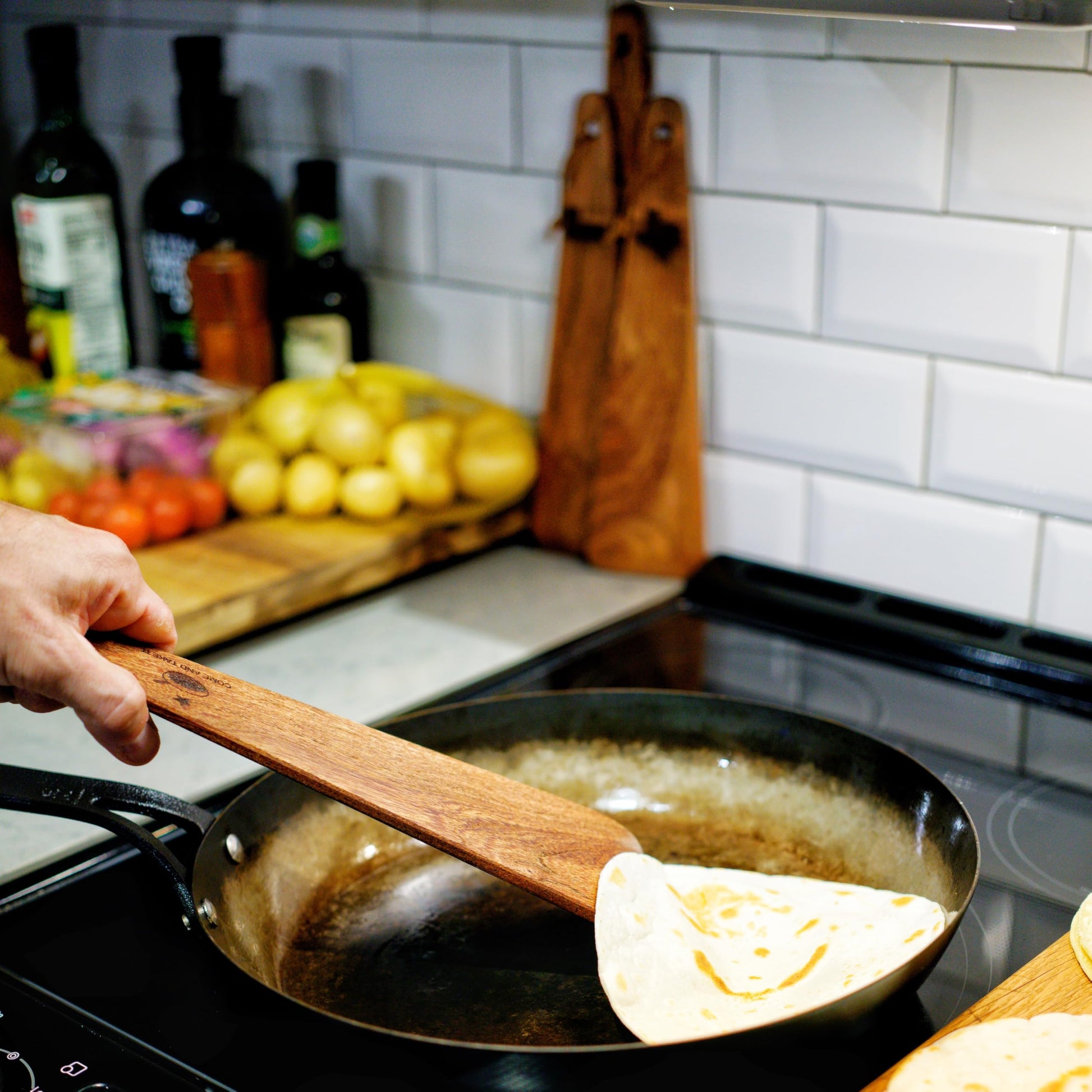 - 🤠COWBOY SPATULA QUALITY: Mesquite Hardwood Spatula - Perfect for Cast Iron Skillets, Nonstick Skillets, Carbon Steel Skillets, Stainless Steel, Enameled Cookware. A flipper, turner, stirrer, crusher, scraper, and can even break up your ground meat. These kitchen tools will last a lifetime. All have smooth edges, are sanded properly, are durable, and have a superb finish. May vary in grain and color due to the natural characteristics of wood. MADE IN USA!