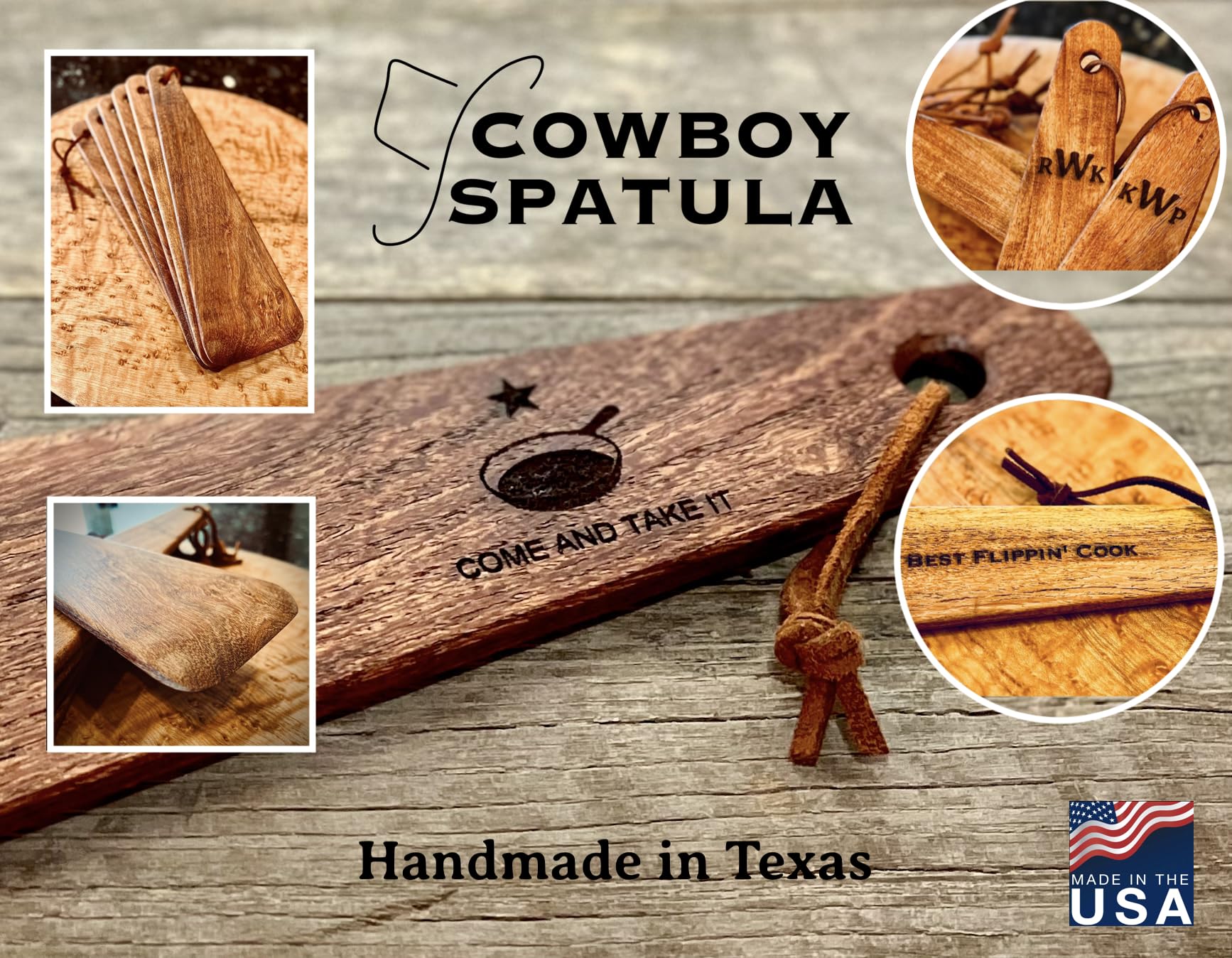 COWBOY SPATULA Mesquite Wood Spatula - Original Handmade in Texas Made in USA For Non stick Frying Pan, Cast Iron Skillet, griddle, baking, stainless steel