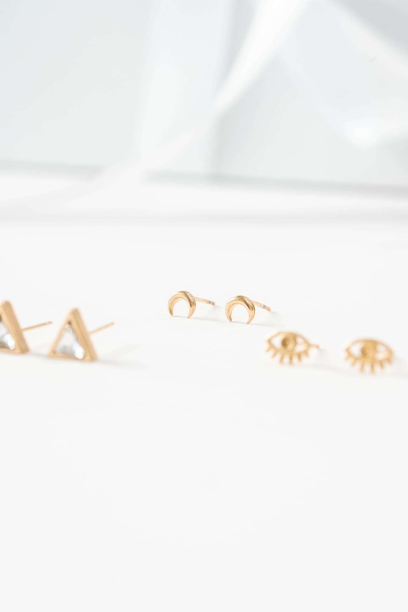 Details: This dainty pair of crescent moon stud earrings are wonderful worn alone or layered with your other delicate earrings, for those of you with double piercings. Proudly made in America, these studs are nickel-free making them hypoallergenic.