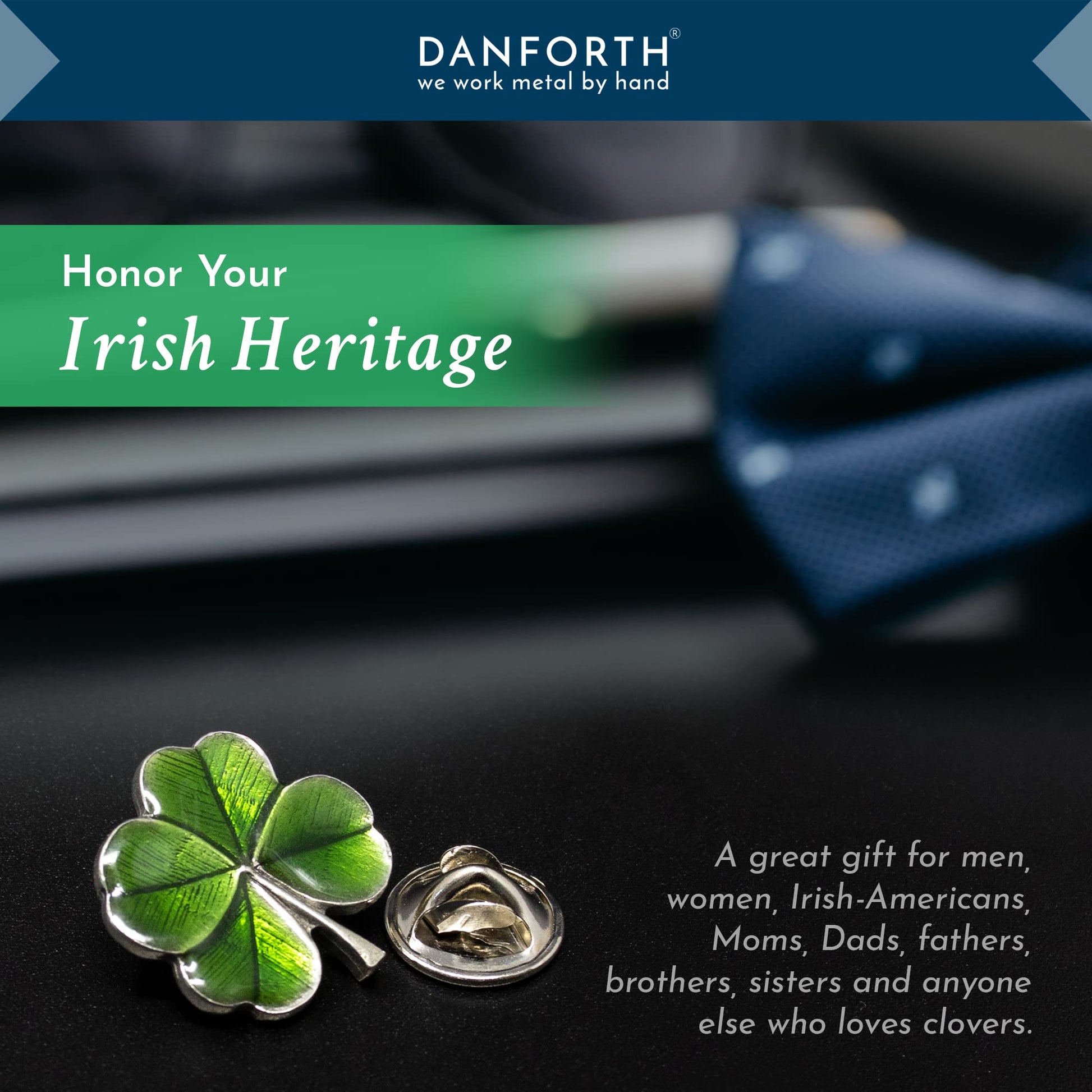 - Danforth Clover Lapel Pin: A beautiful green lapel pin handmade to represent a four-leaf clover; Crafted from high-quality pewter metal with a clutch back closure; Great costume accessory for St. Patrick's Day