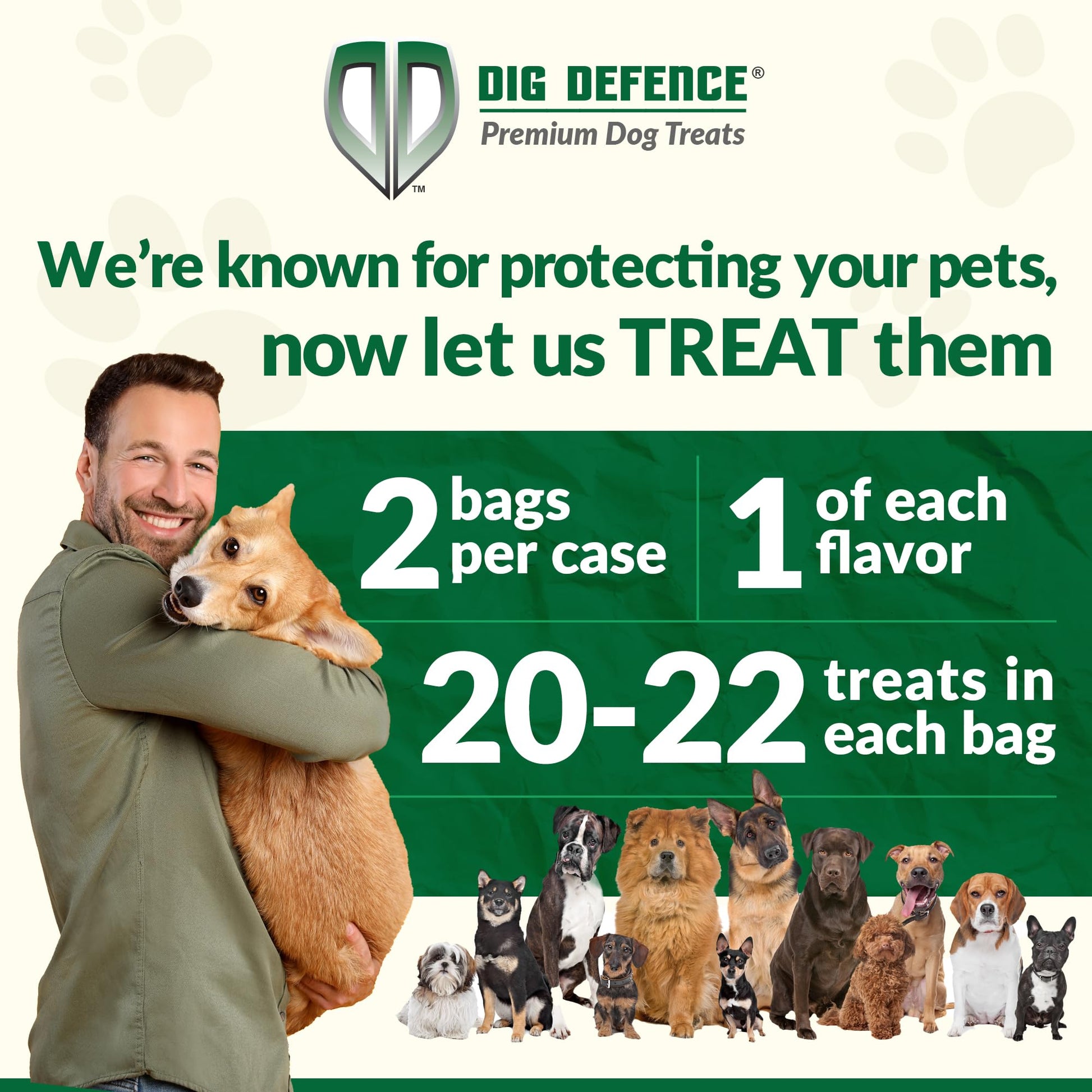 - Dogs dig our treats—literally! - Available in different sizes and flavors, Dig Defence dog treats are perfect for every dog, from small to large. Watch your pup happily “dig in” to these irresistible, all-natural snacks while training or rewarding them!