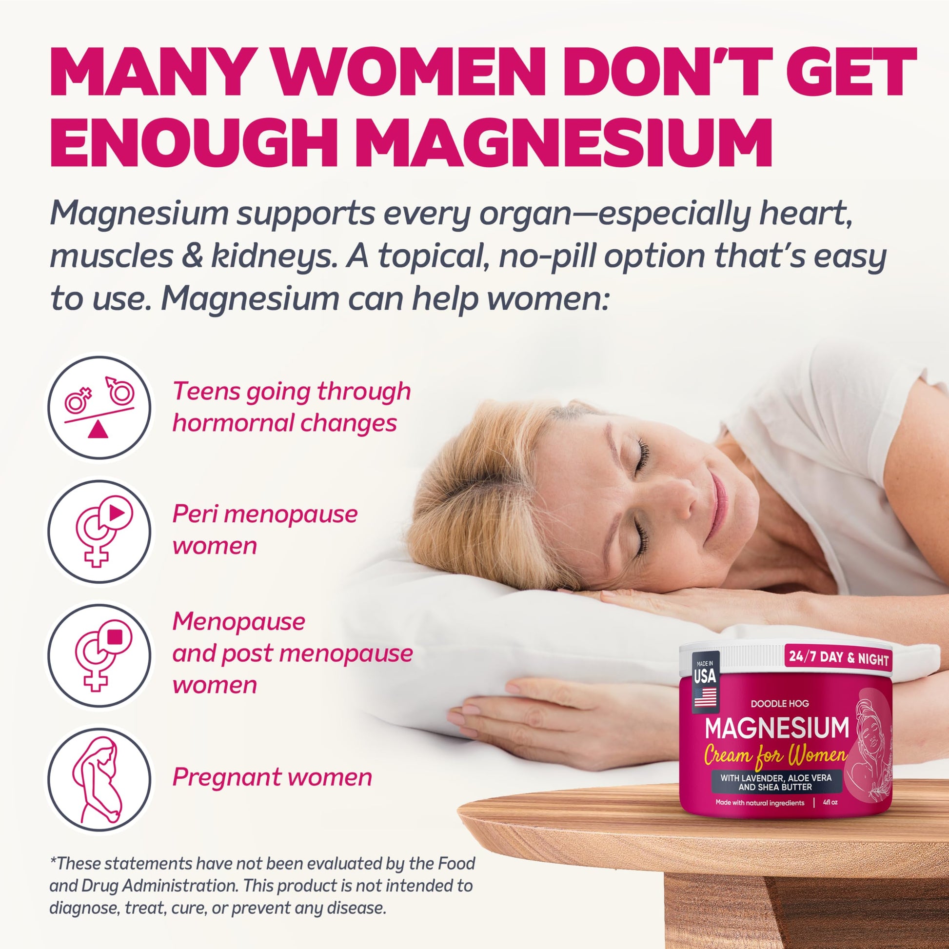DOODLE HOG Magnesium Cream for Women Lavender Scent - Soothing Relief & Relaxation with Calendula, Aloe Vera, Shea Butter - Topical Magnesium Cream for Sleep - USA Made - (4 oz, Lavender)