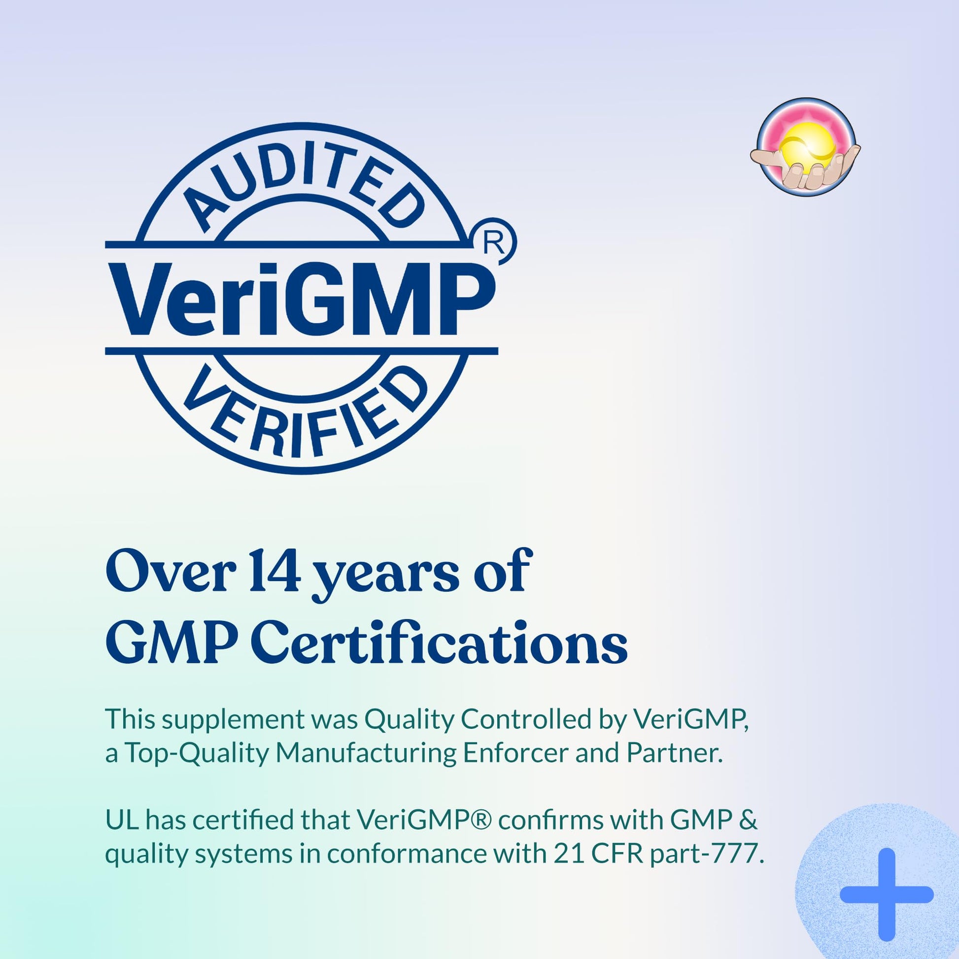 - Verifiable GMP Certification Trust is earned, not given. That's why we back up our GMP certification claims with verifiable evidence. Partnering with VeriGMP, a UL-certified company, we adhere to strict GMP quality systems, ensuring that each product meets the highest standards of manufacturing and quality assurance.
