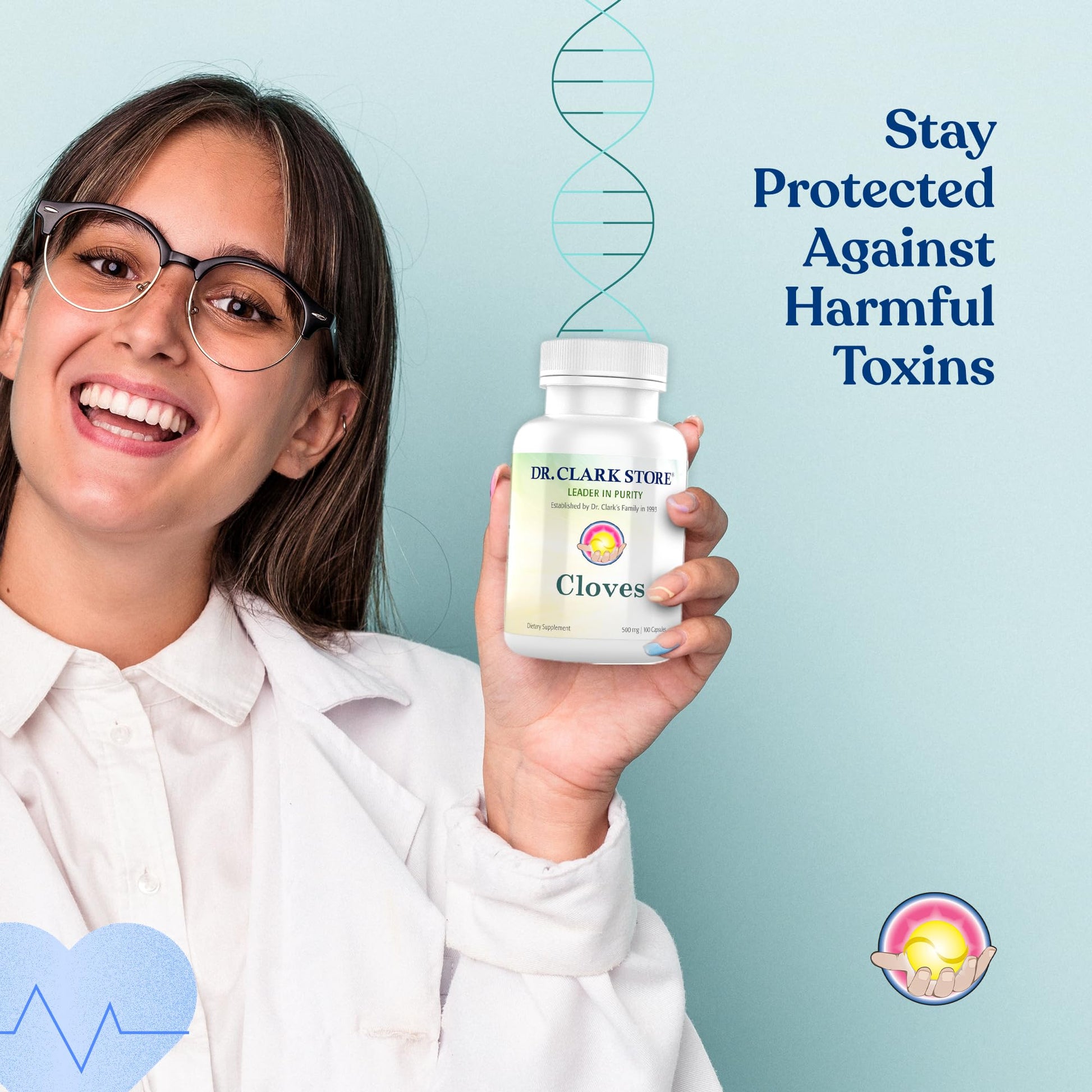Dr Clark Cloves Healthcare Supplement - Natural Digestive Health, 500 mg, 100 Pure Gelatin Capsules