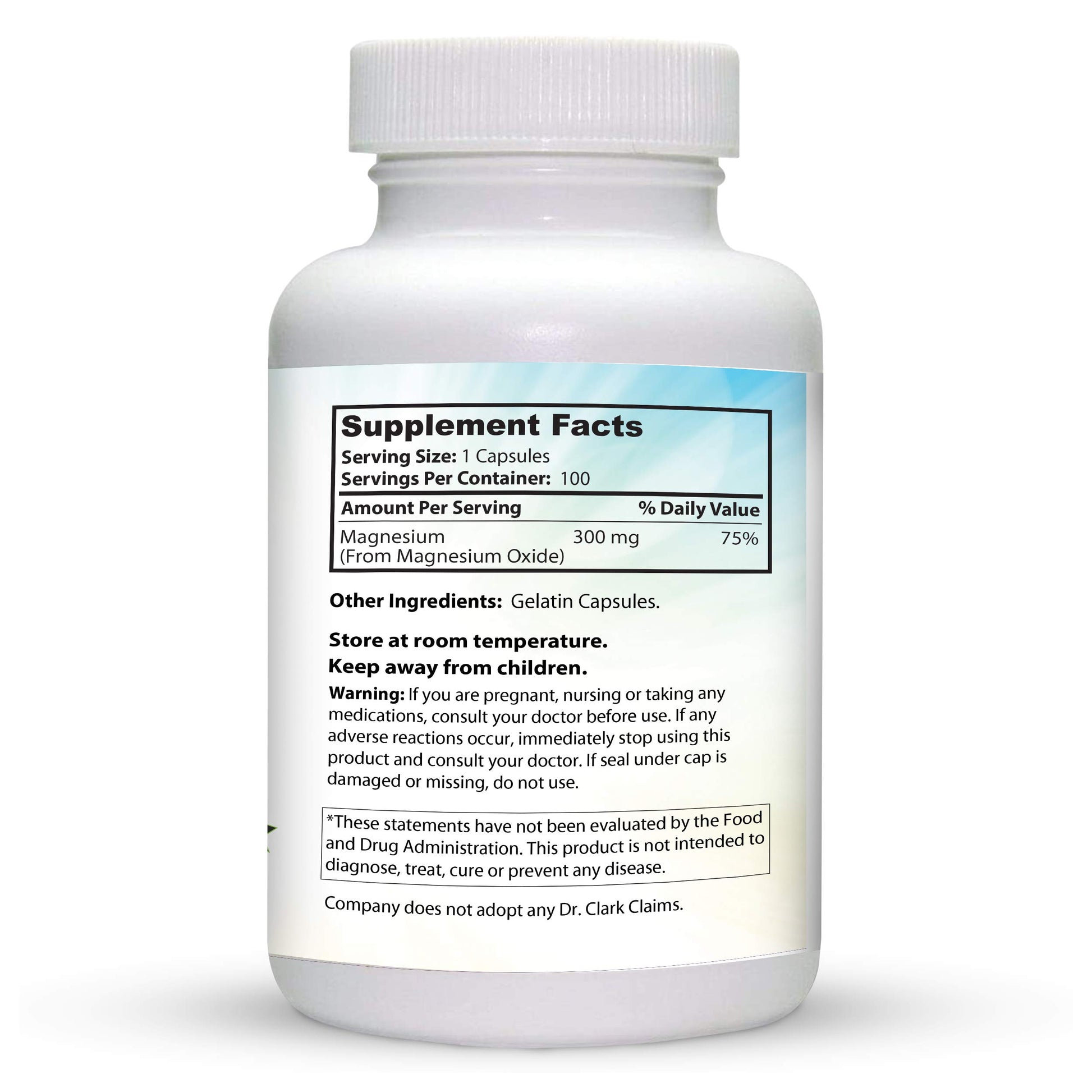 - CONTAINS 100 day supply of Dr. Clark Store Magnesium Oxide Supplement, 300 mg per Gelatin Capsule, 100 Capsules per Bottle