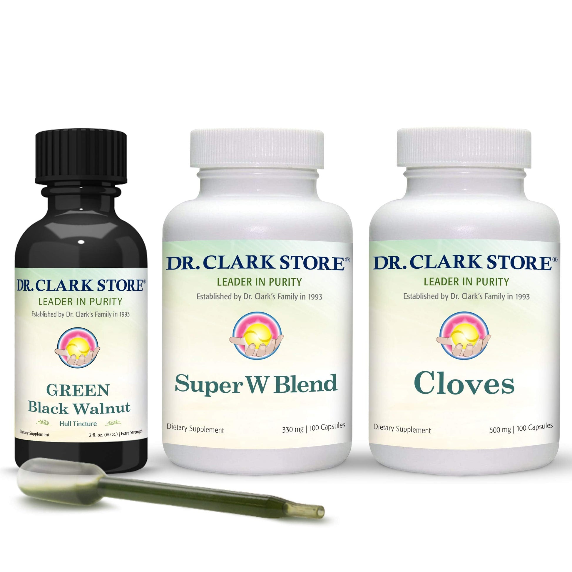 Dr Clark Store Intestine Support & Cleanse Kit - with Original Green Tincture from Black Walnut Hulls, Wormwood, and Cloves-Helps Maintain Optimum Intestinal Function