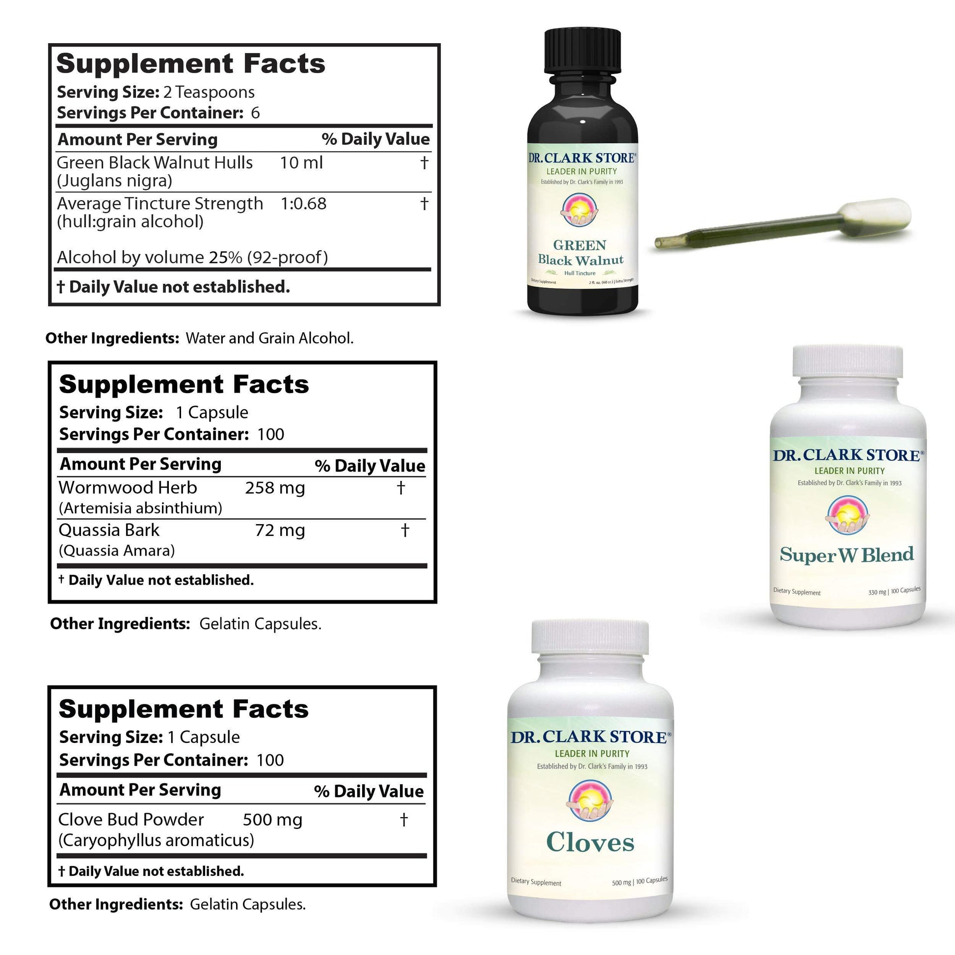 - GUARANTEED FRESH AND GREEN –The Dr. Clark Store GREEN Tincture from the Young Black Walnuts are Guaranteed to be GREEN when harvested because then they contain Higher Levels of JUGLONE, an essential nutrient for maintaining Optimal Intestinal Health, our Tincture contains Double the amount of black walnut hull compared to regular strength tinctures. Further, our Cloves and Wormwood are always encapsulated from Freshly Ground and Milled Herbs