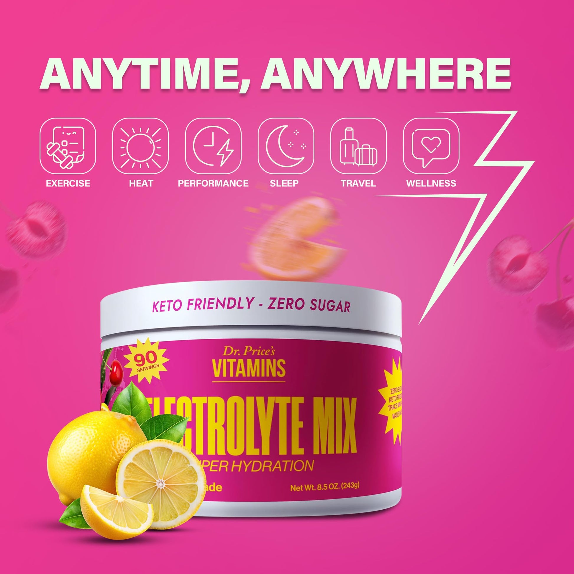 Dr. Price’s Electrolyte Mix | Sugar-Free Hydration Powder with 72+ Trace Minerals | No Sugar, Fast-Dissolving Electrolytes Powder Packets | Cherry Lemonade, 90 Servings
