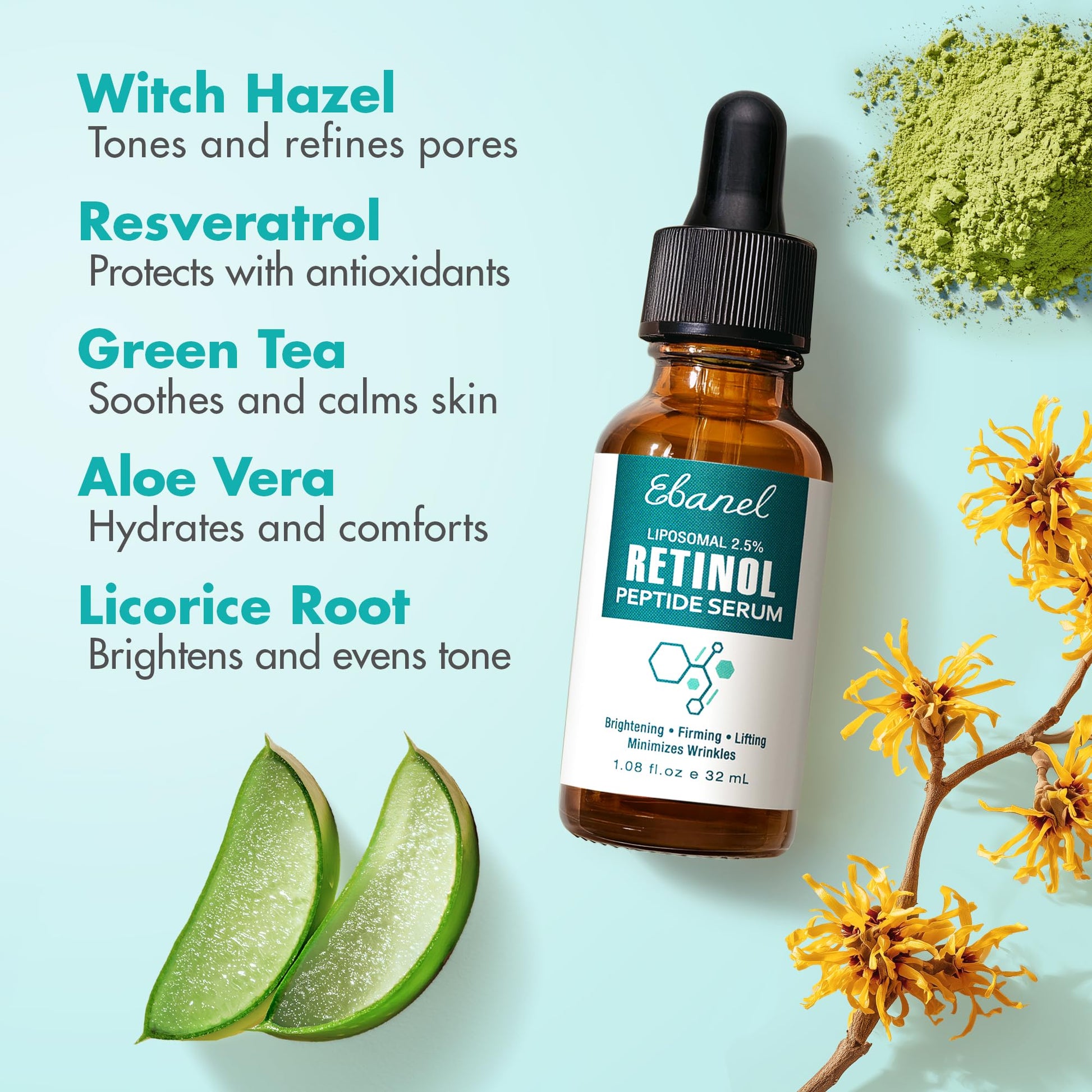 Ebanel Retinol Serum for Face with Vitamin C, Peptides & Hyaluronic Acid, Anti Aging Face Serum for Fine Lines, Uneven Skin Tone, Dark Spots & Texture, Pore Minimizer with Resveratrol & Niacinamide