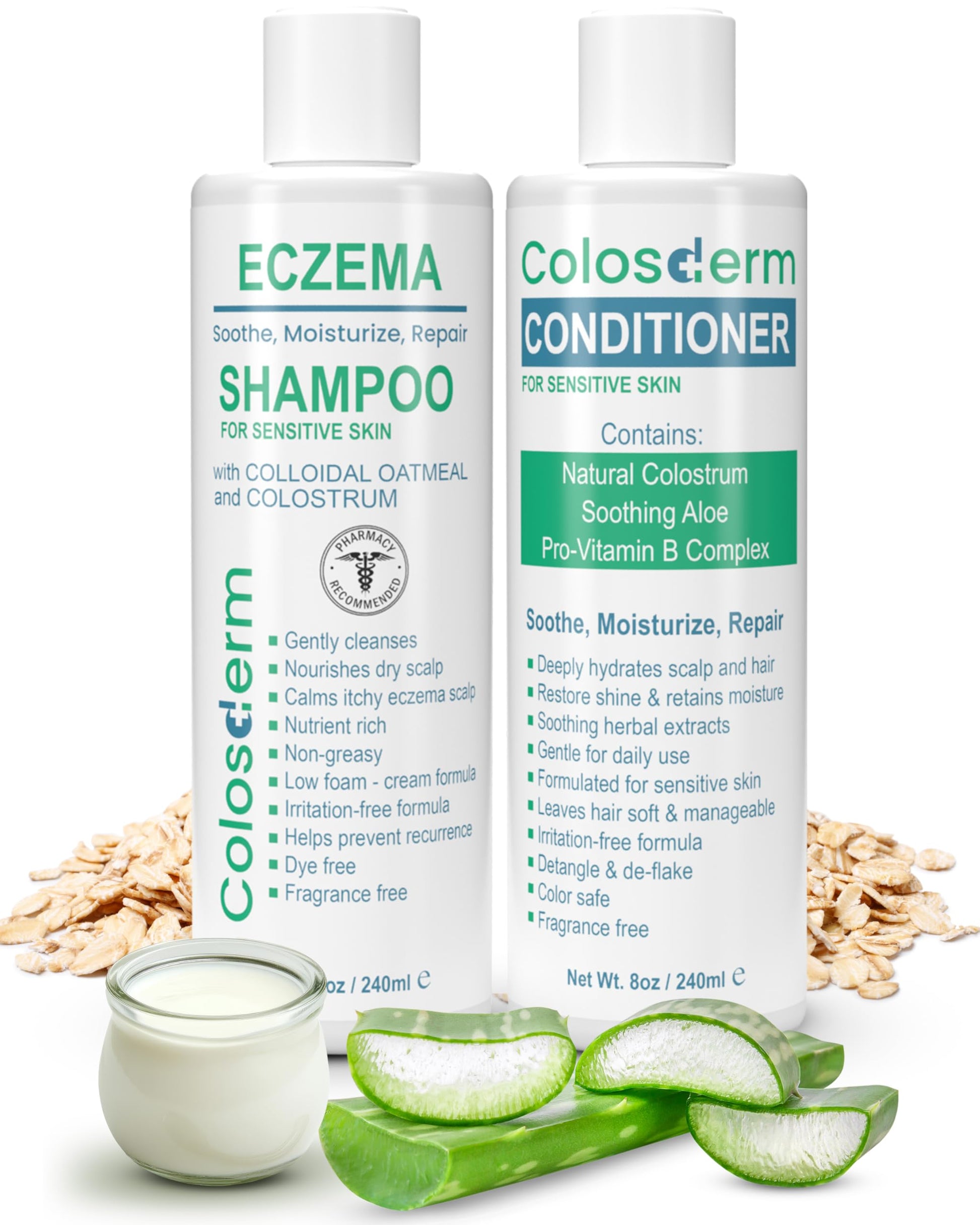 Eczema Cream Shampoo and Conditioner Scalp Treatment for Sensitive Skin for Kids & Adults- Colostrum & Colloidal Oatmeal -Itchy Scalp Anti Dandruff Shampoo for Women & Men, 16 fl oz, Made in USA