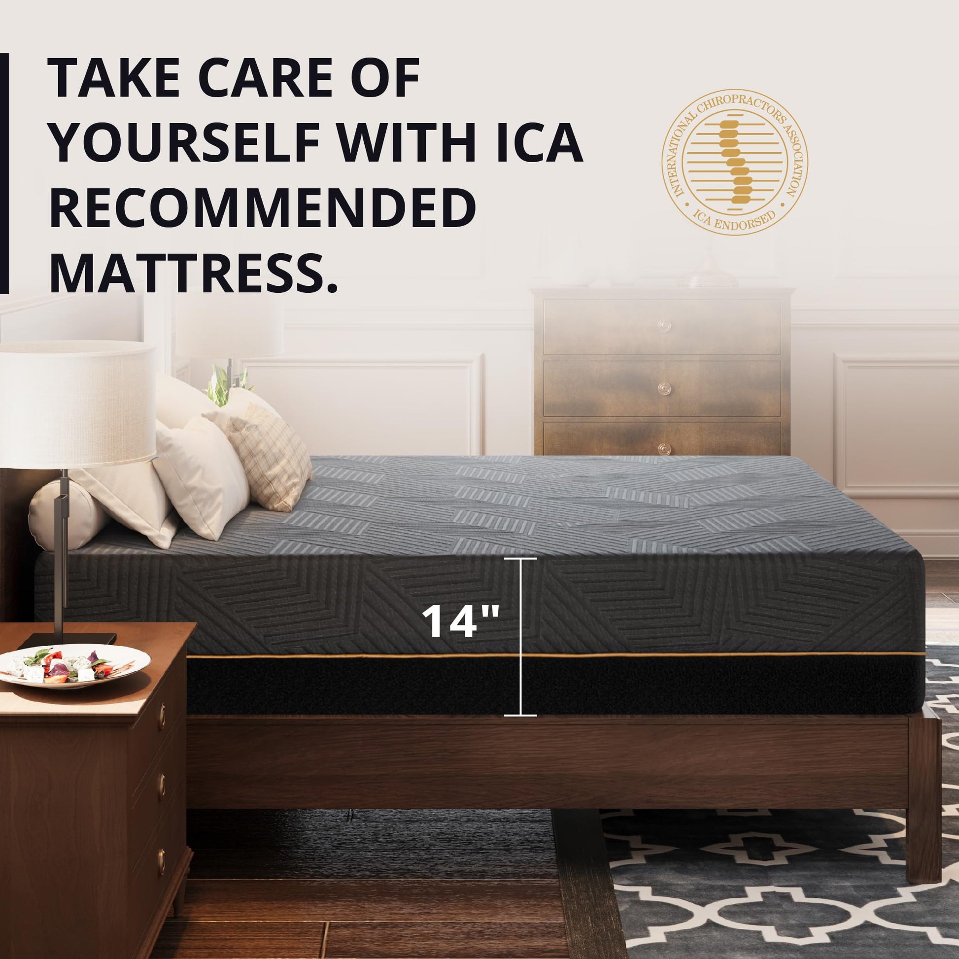 EGOHOME 14 inch Firm Mattress, Memory Foam Mattress with Cooling Cover, Bed in a Box, CertiPUR-US Certified, Breathable and Supportive, Made in USA