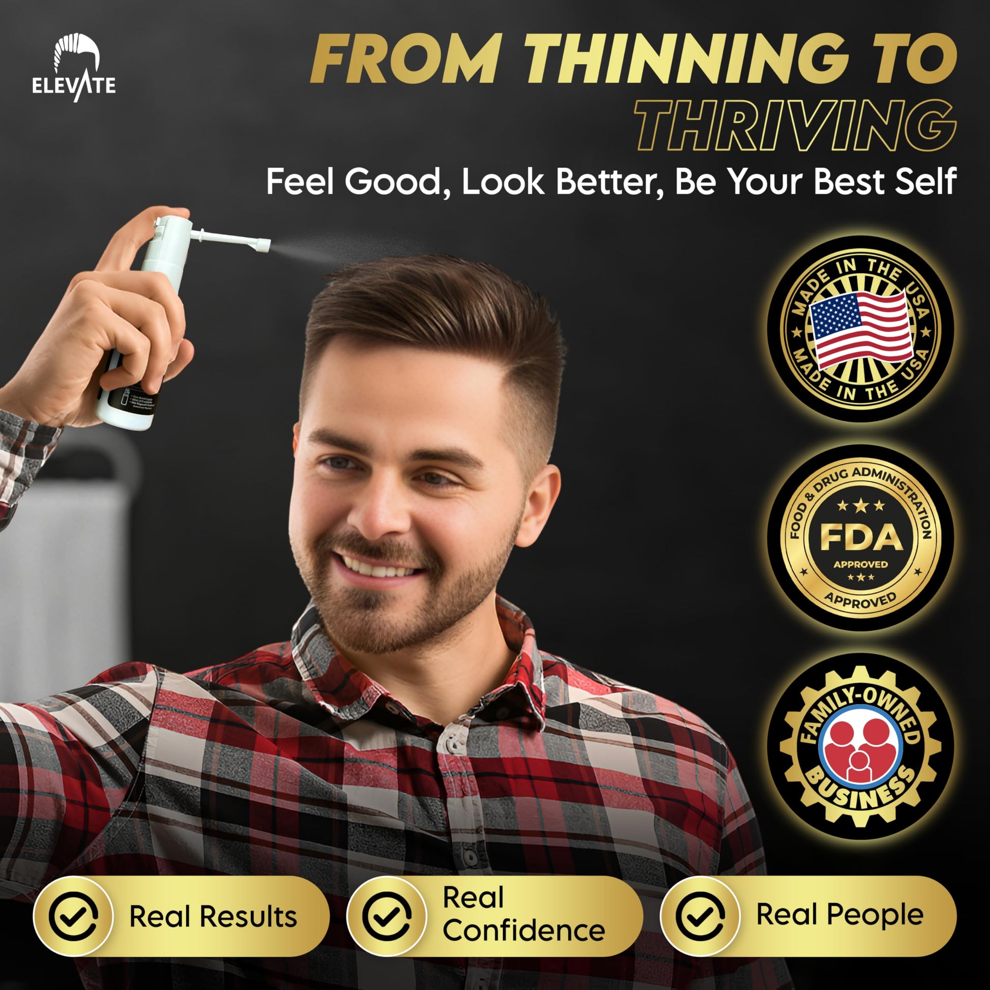 Elevate Hair Regrowth Treatment 5% Minoxidil Spray for Men - Clinically Proven Formula Fast Absorbing for Hair Loss and Growth Unscented Topical Hair Spray for Thinning & Balding Hair - Made in USA