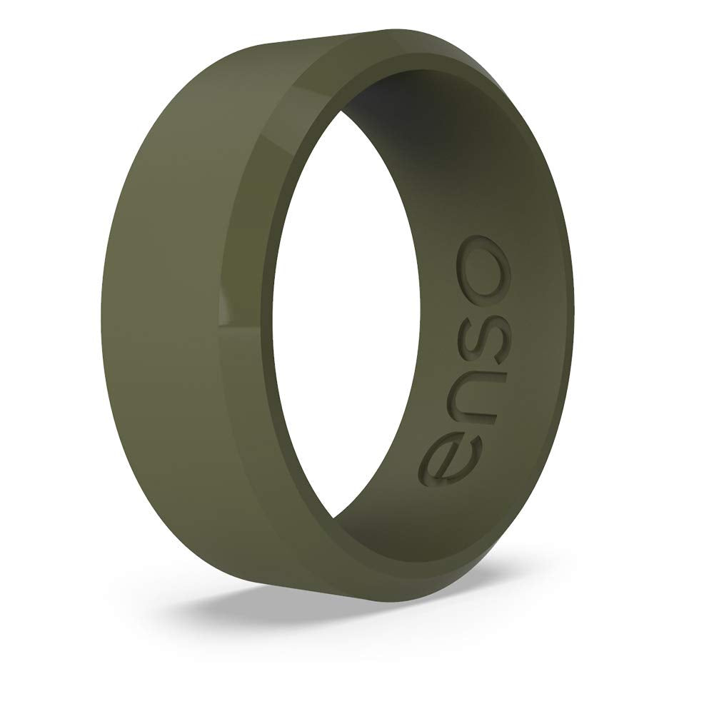 Enso Rings Bevel Classic Silicone Wedding Ring – Hypoallergenic Unisex Wedding Band – Comfortable Band for Active Lifestyle – 8mm Wide, 2.16mm Thick Pine