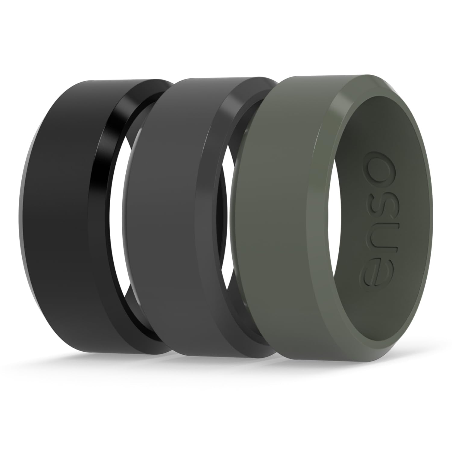 Enso Rings Bevel Classic Silicone Wedding Ring – Hypoallergenic Unisex Wedding Band – Comfortable Band for Active Lifestyle - Obsidian/Slate/Pine